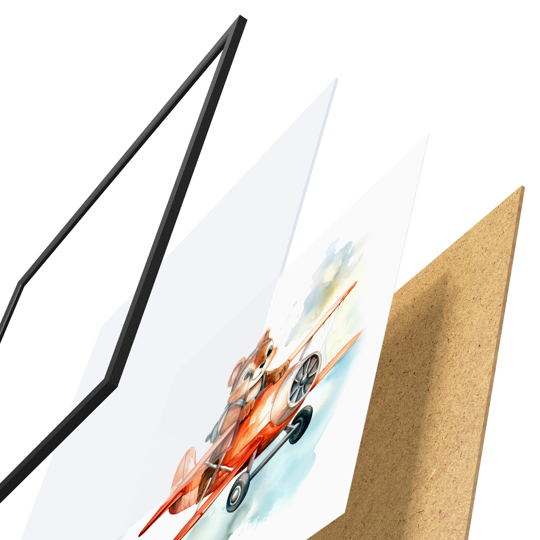 Affiche Un petit écureuil vole dans une illustration aquarelle pour enfants d'un avion rouge Non f39116