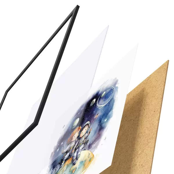 Le poster se compose d'un cadre, d'un plexiglas, d'une image imprimée et d'un support en aggloméré. Le poster peut être immédiatement accroché au mur grâce aux fixations au dos.