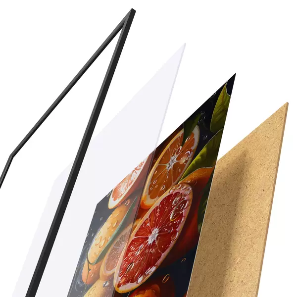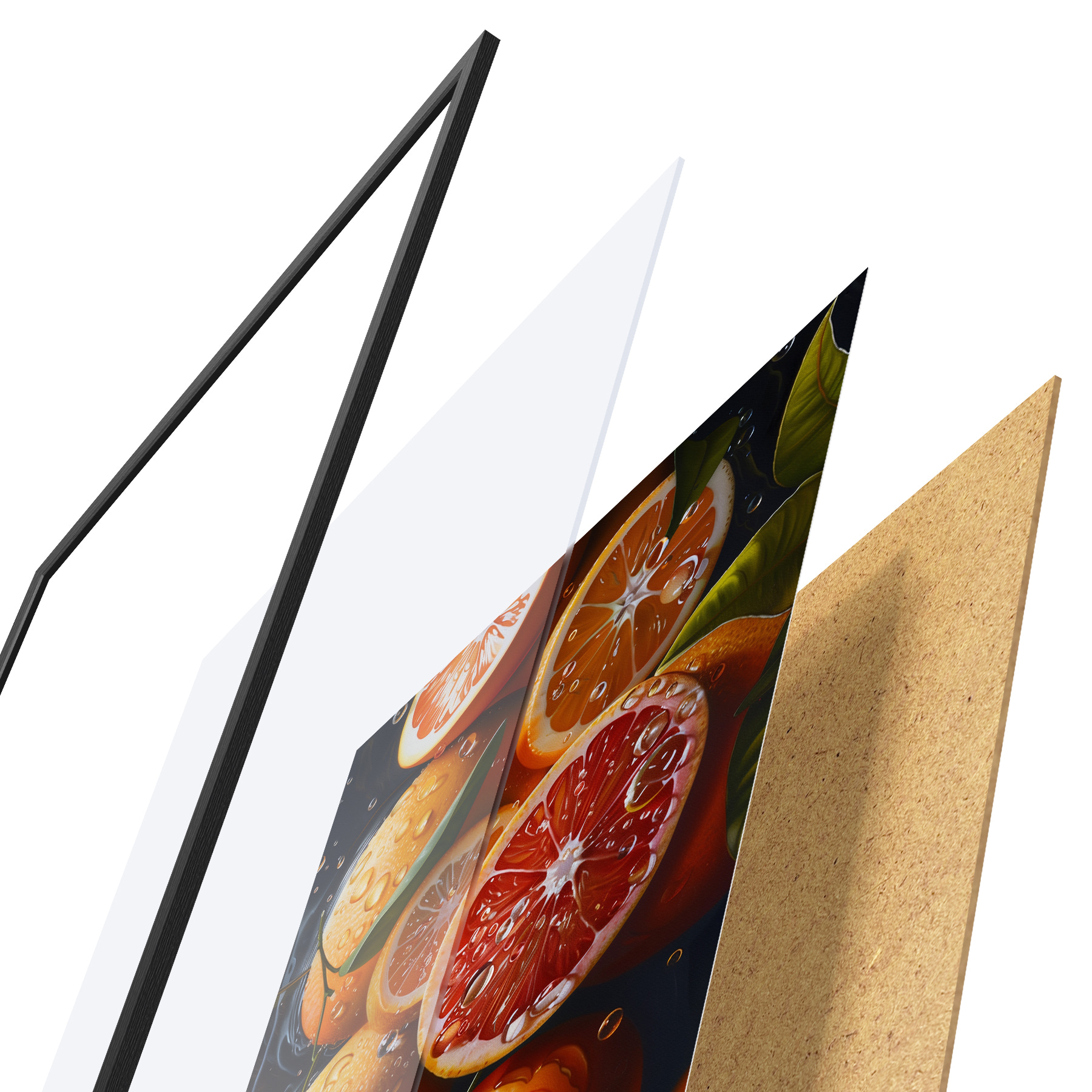 Le poster se compose d'un cadre, d'un plexiglas, d'une image imprimée et d'un support en aggloméré. Le poster peut être immédiatement accroché au mur grâce aux fixations au dos.