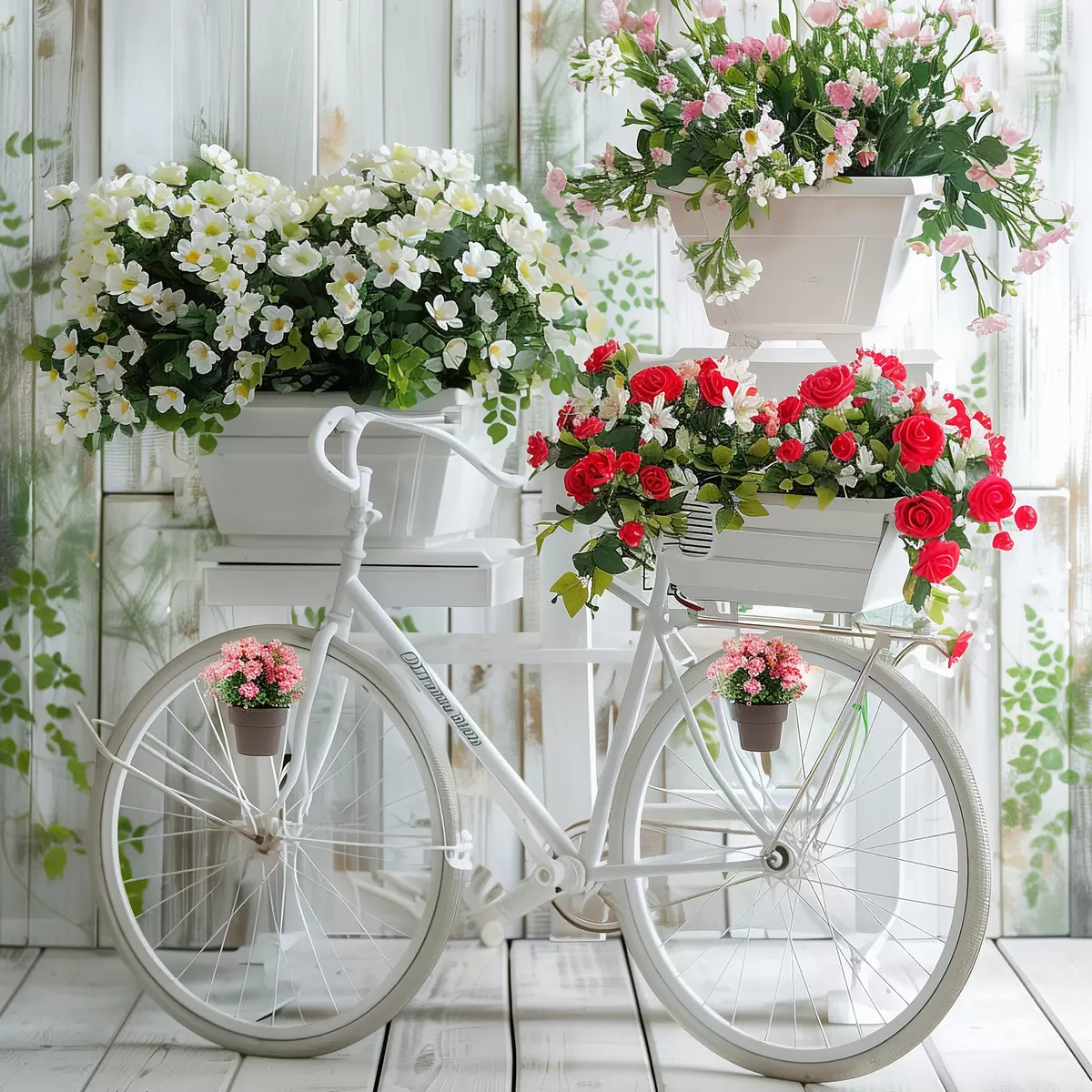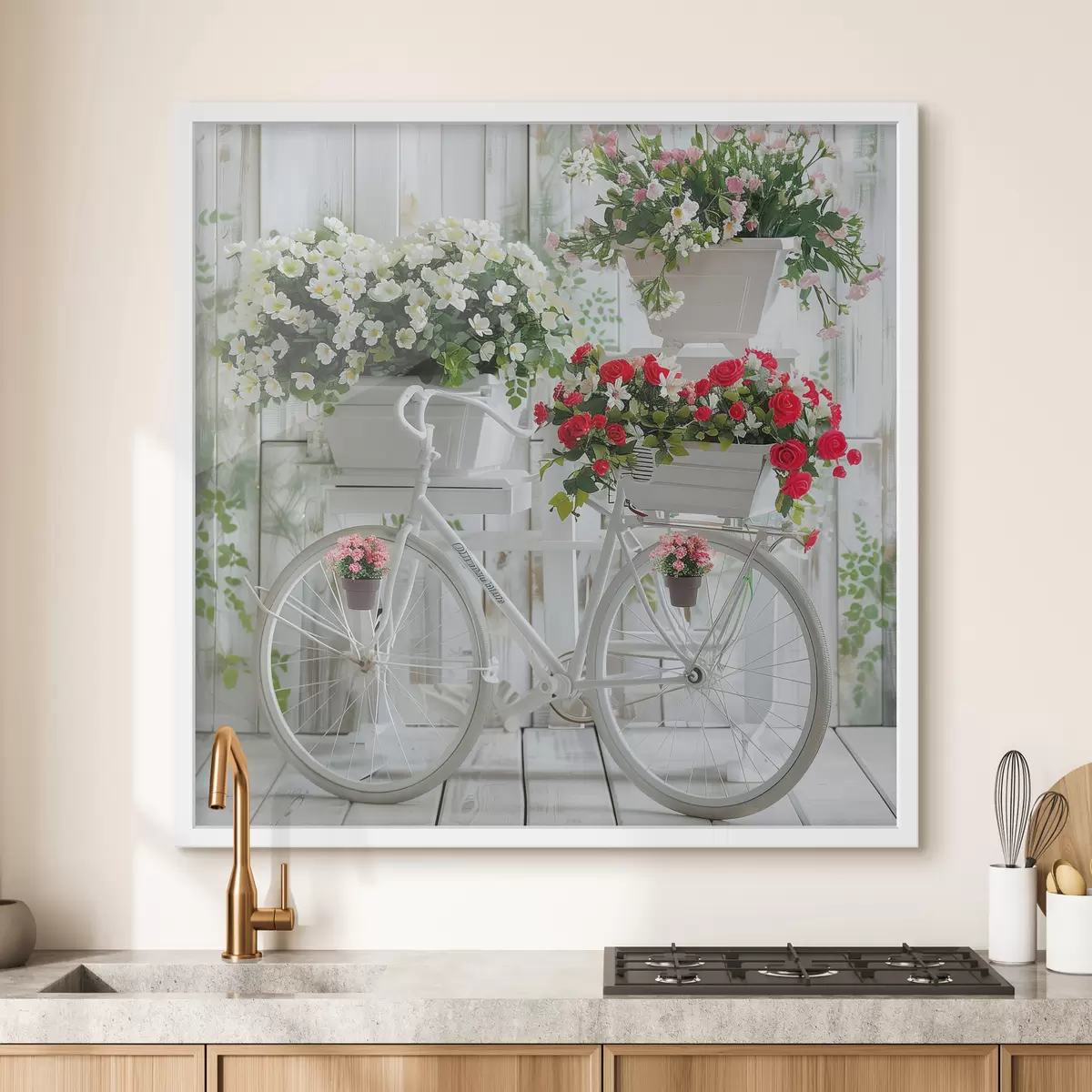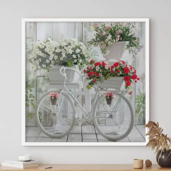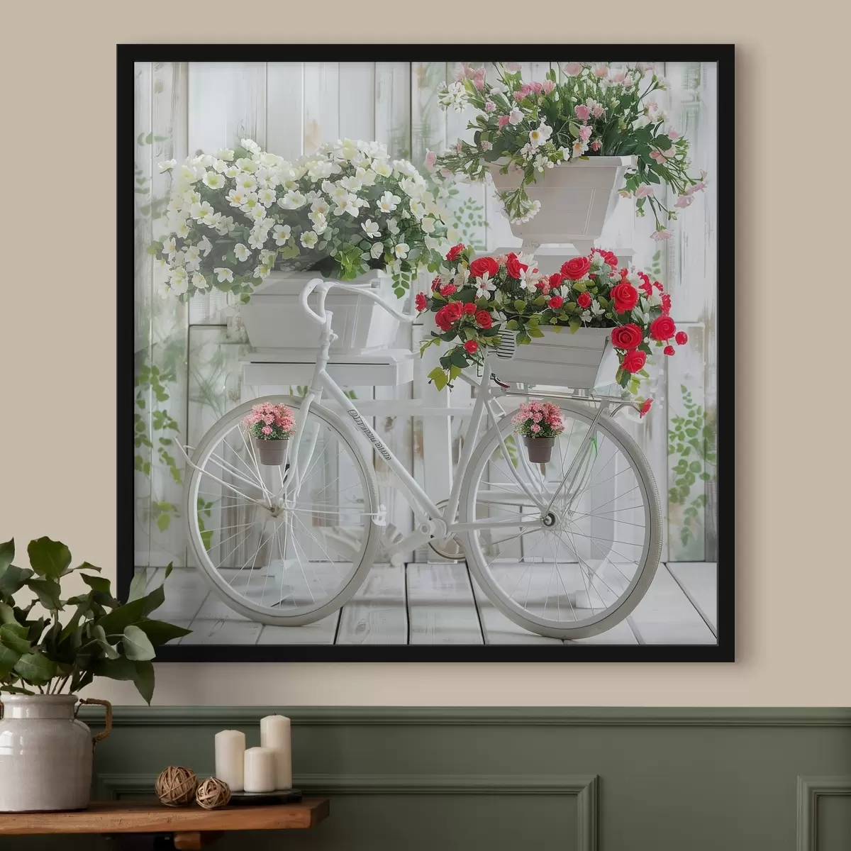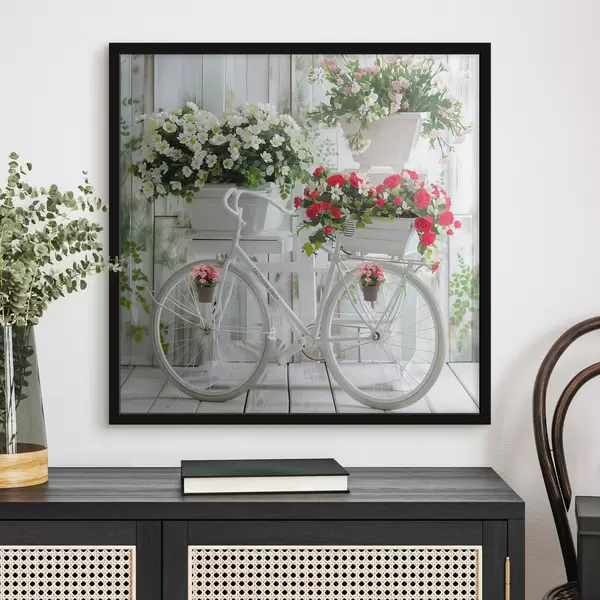 Affiche Vélo et panier de fleurs de style provençal f39242