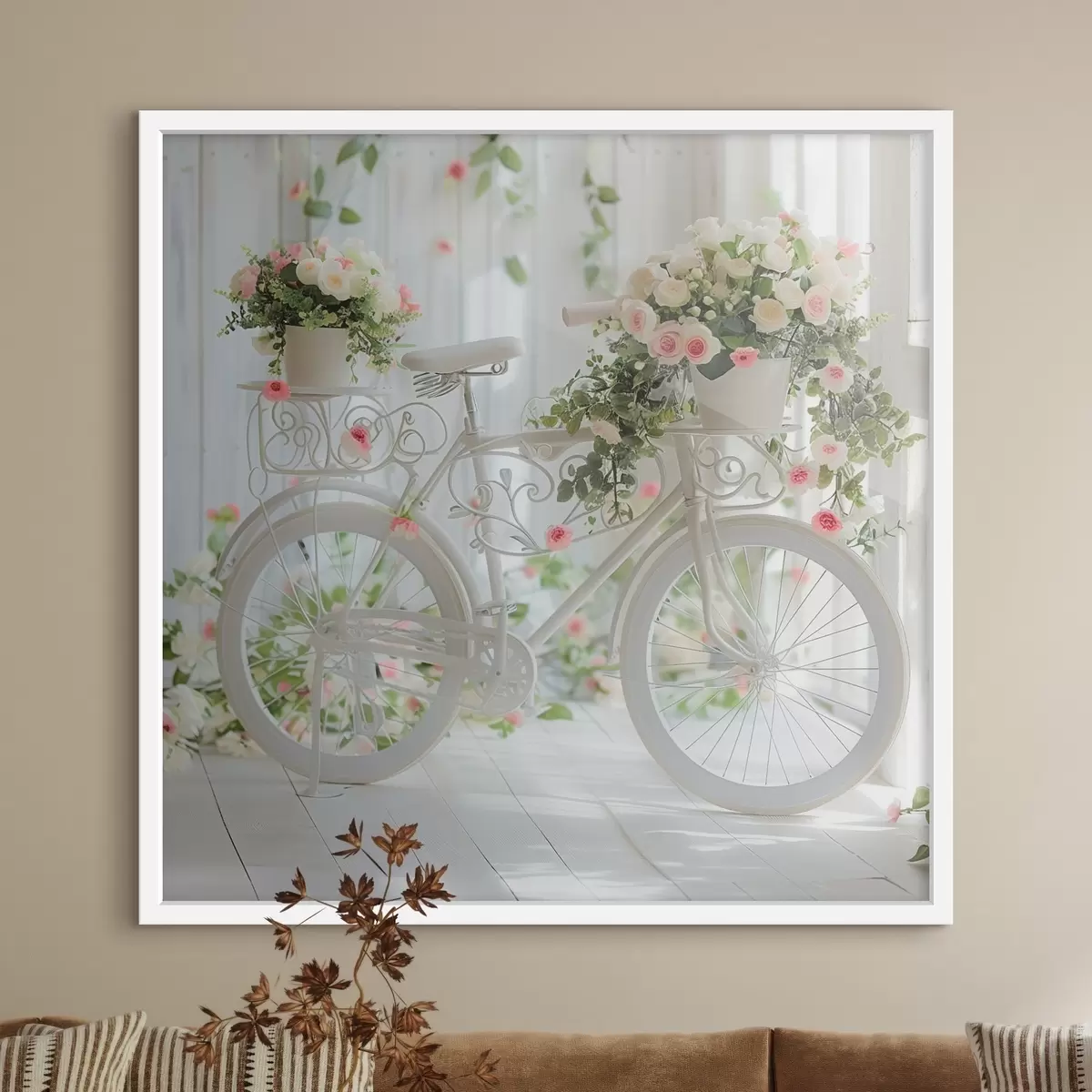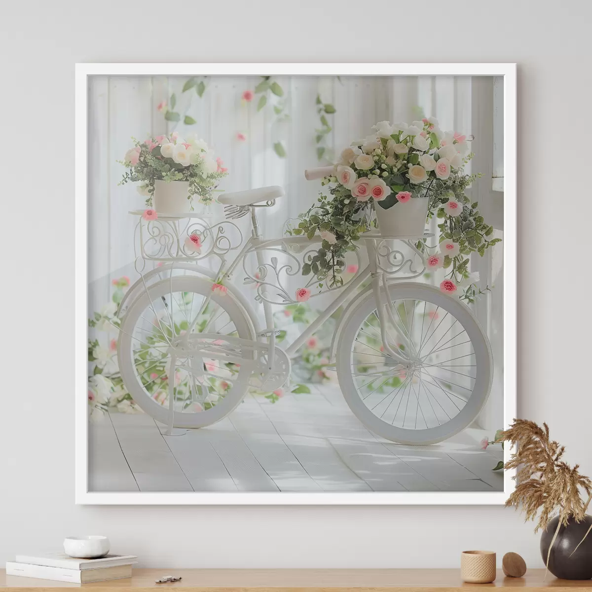 Affiche Vélo blanc avec un panier de fleurs dans le style provençal f39243