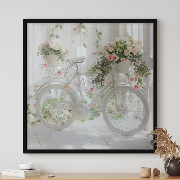 Affiche Vélo blanc avec un panier de fleurs dans le style provençal Non f39243