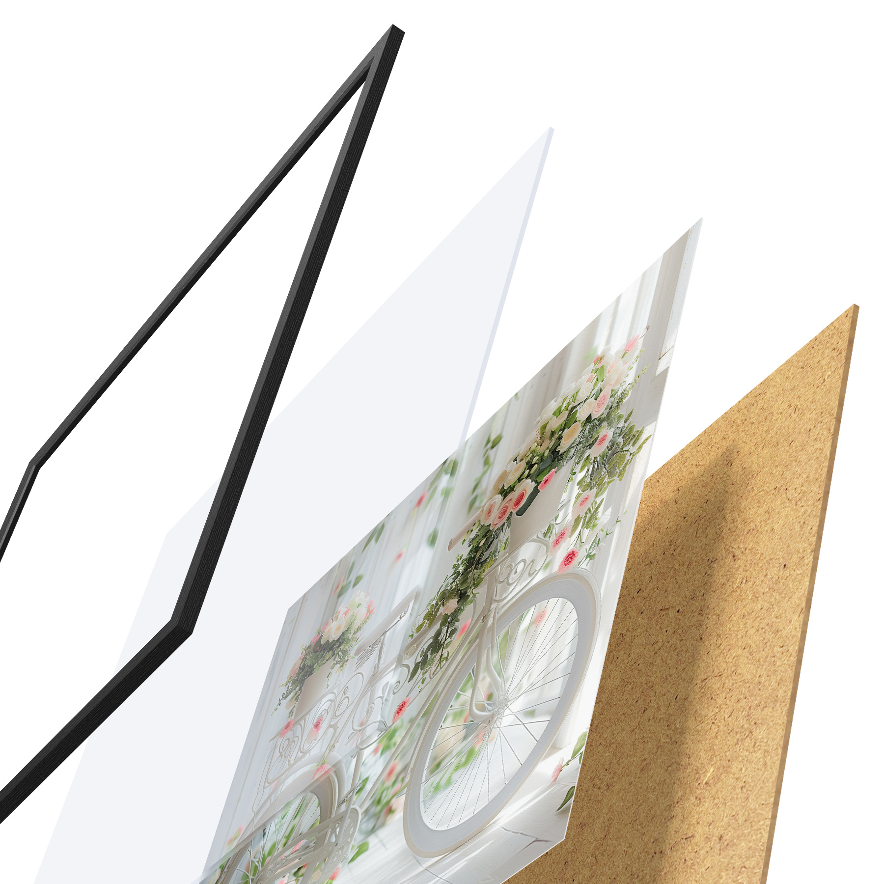 Le poster se compose d'un cadre, d'un plexiglas, d'une image imprimée et d'un support en aggloméré. Le poster peut être immédiatement accroché au mur grâce aux fixations au dos.