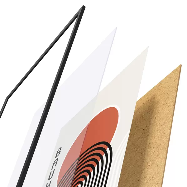 Le poster se compose d'un cadre, d'un plexiglas, d'une image imprimée et d'un support en aggloméré. Le poster peut être immédiatement accroché au mur grâce aux fixations au dos.