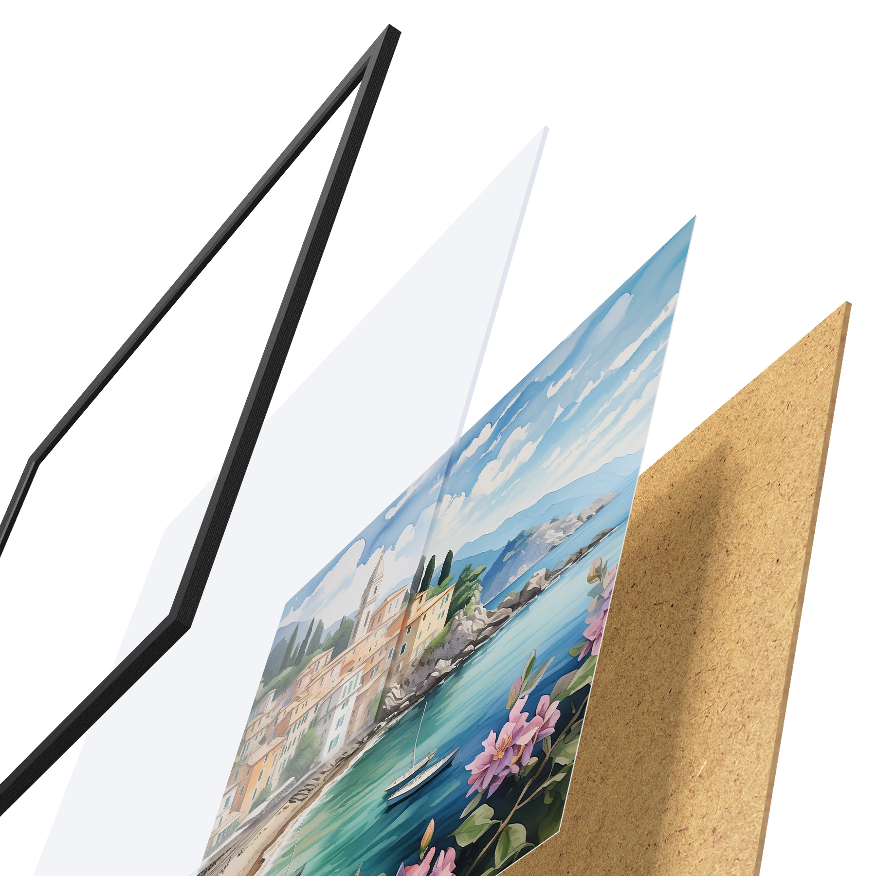 Le poster se compose d'un cadre, d'un plexiglas, d'une image imprimée et d'un support en aggloméré. Le poster peut être immédiatement accroché au mur grâce aux fixations au dos.