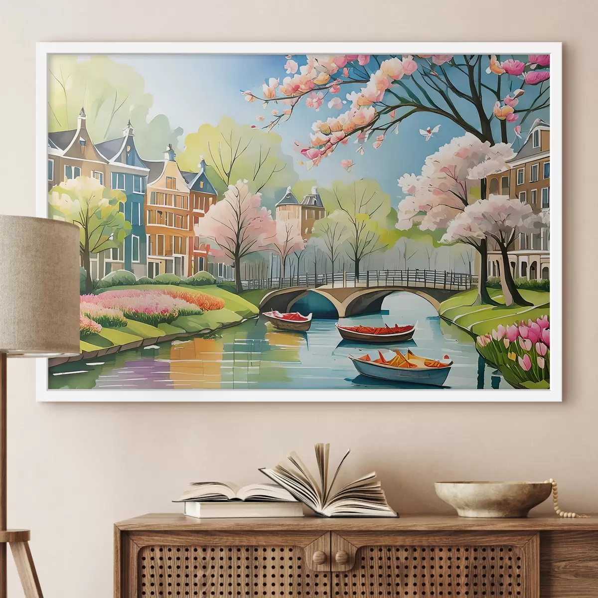 Affiche arbres en fleurs à Amsterdam au printemps Non f39301