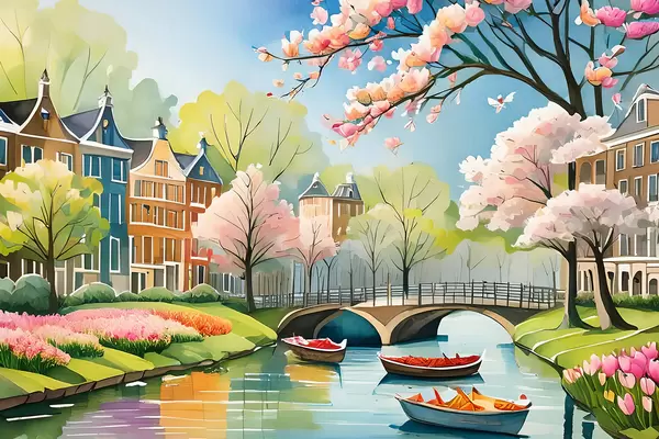 Affiche arbres en fleurs à Amsterdam au printemps Non f39301