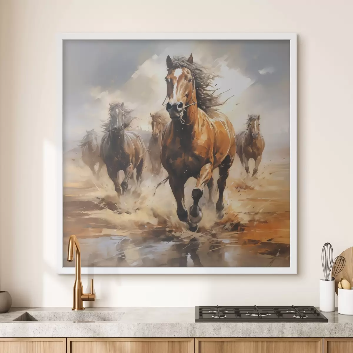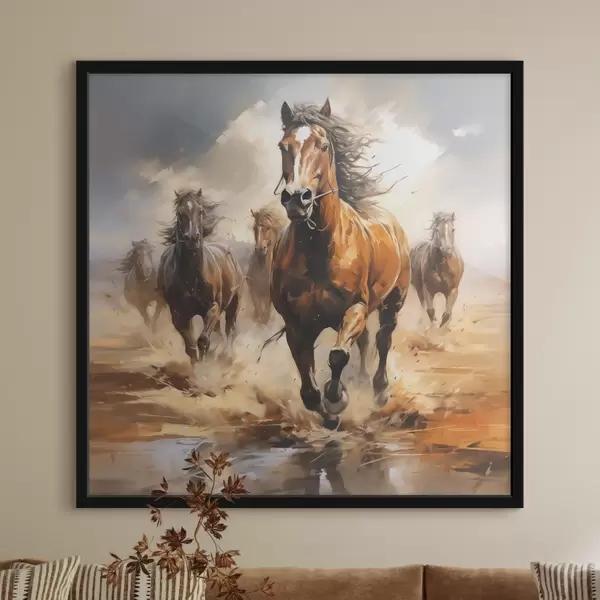 Affiche Chevaux au galop dans la prairie peinture à l'huile Non f39436