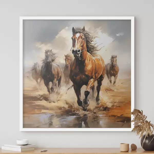 Affiche Chevaux au galop dans la prairie peinture à l'huile f39436
