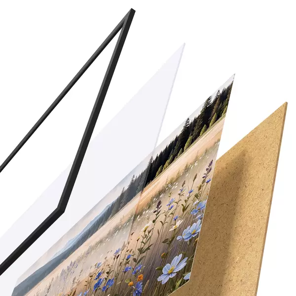 Le poster se compose d'un cadre, d'un plexiglas, d'une image imprimée et d'un support en aggloméré. Le poster peut être immédiatement accroché au mur grâce aux fixations au dos.