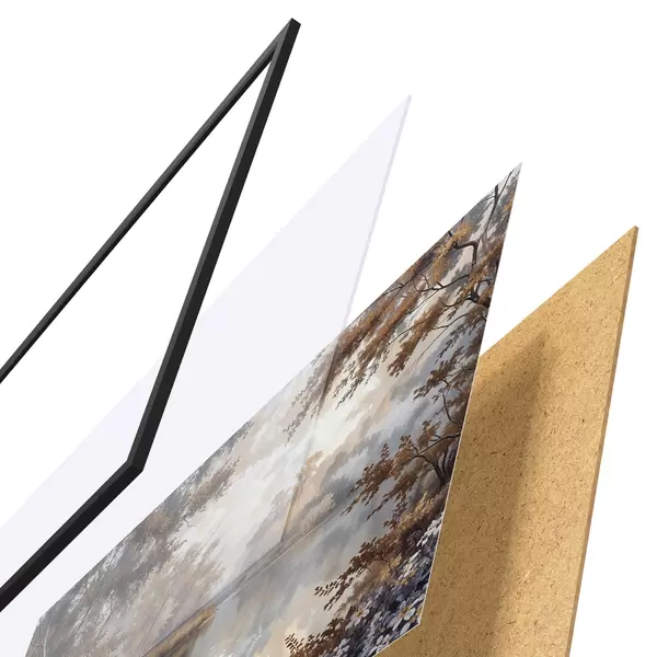Le poster se compose d'un cadre, d'un plexiglas, d'une image imprimée et d'un support en aggloméré. Le poster peut être immédiatement accroché au mur grâce aux fixations au dos.