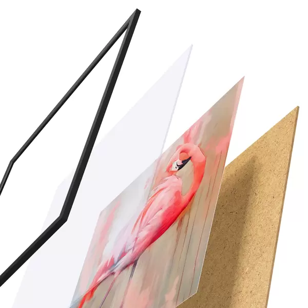 Le poster se compose d'un cadre, d'un plexiglas, d'une image imprimée et d'un support en aggloméré. Le poster peut être immédiatement accroché au mur grâce aux fixations au dos.