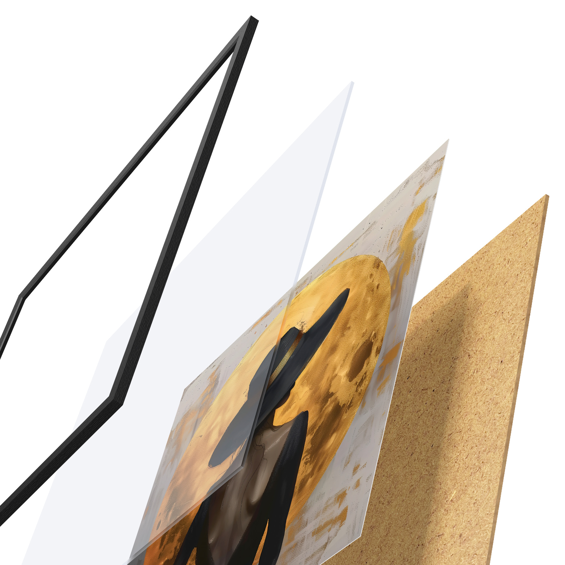 Le poster se compose d'un cadre, d'un plexiglas, d'une image imprimée et d'un support en aggloméré. Le poster peut être immédiatement accroché au mur grâce aux fixations au dos.