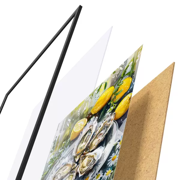 Le poster se compose d'un cadre, d'un plexiglas, d'une image imprimée et d'un support en aggloméré. Le poster peut être immédiatement accroché au mur grâce aux fixations au dos.