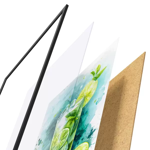 Le poster se compose d'un cadre, d'un plexiglas, d'une image imprimée et d'un support en aggloméré. Le poster peut être immédiatement accroché au mur grâce aux fixations au dos.