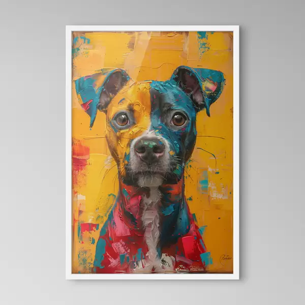 Affiche Portrait d'un Pitbull avec des coups de pinceau à huile jaune et bleu Non f39722