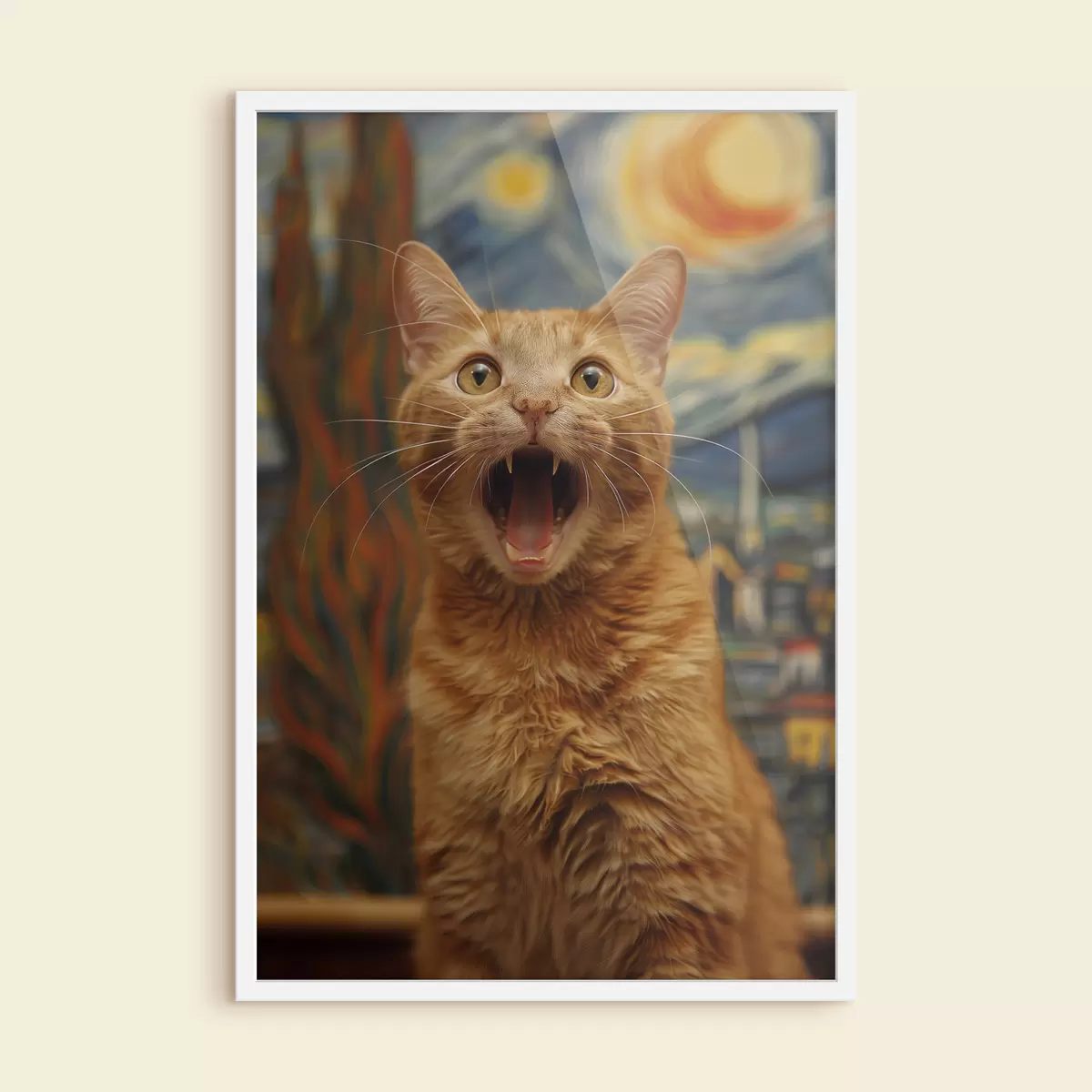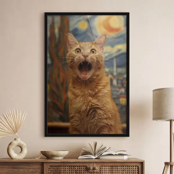 Affiche Peinture de style Van Gogh représentant "Le Cri" avec un chat f39724