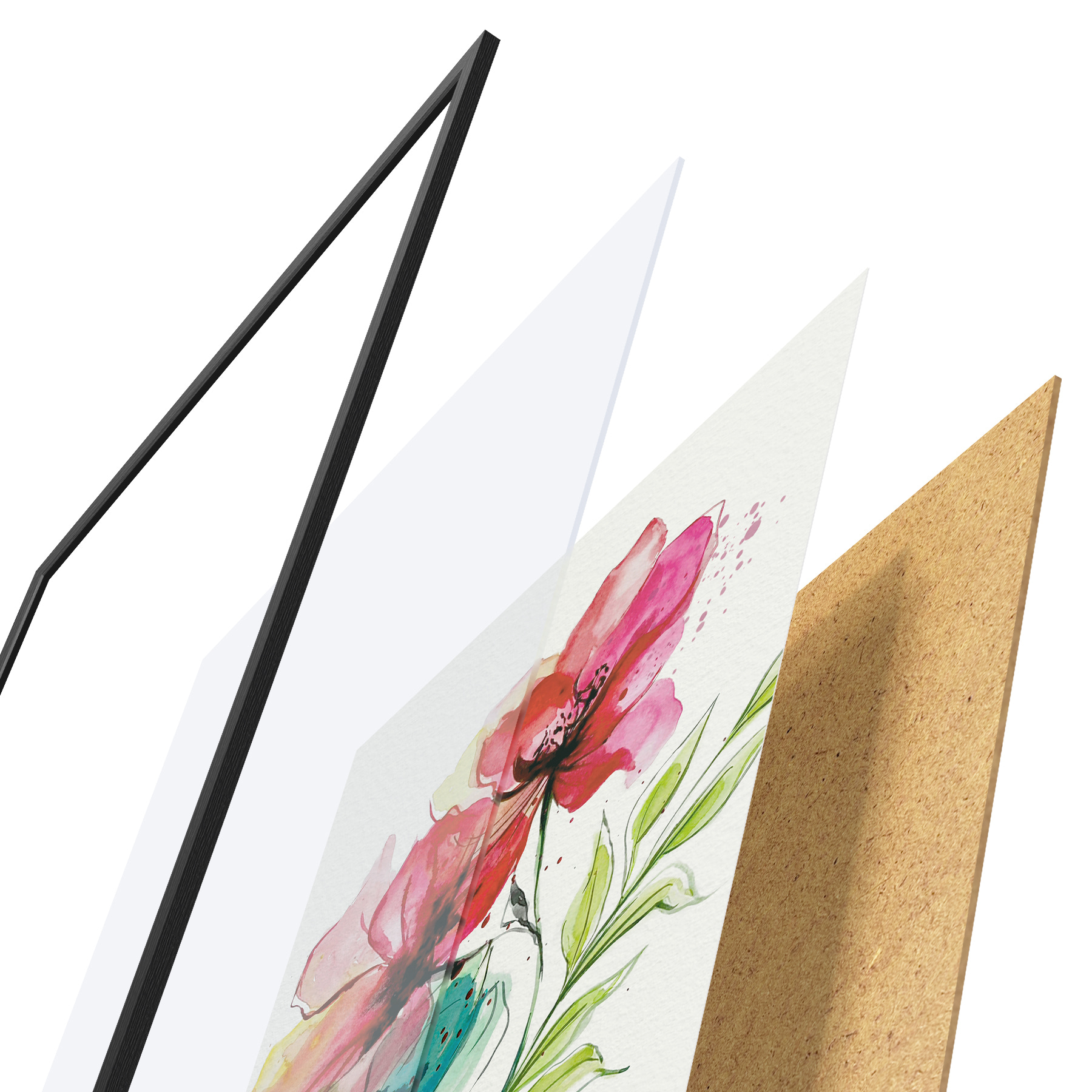 Le poster se compose d'un cadre, d'un plexiglas, d'une image imprimée et d'un support en aggloméré. Le poster peut être immédiatement accroché au mur grâce aux fixations au dos.