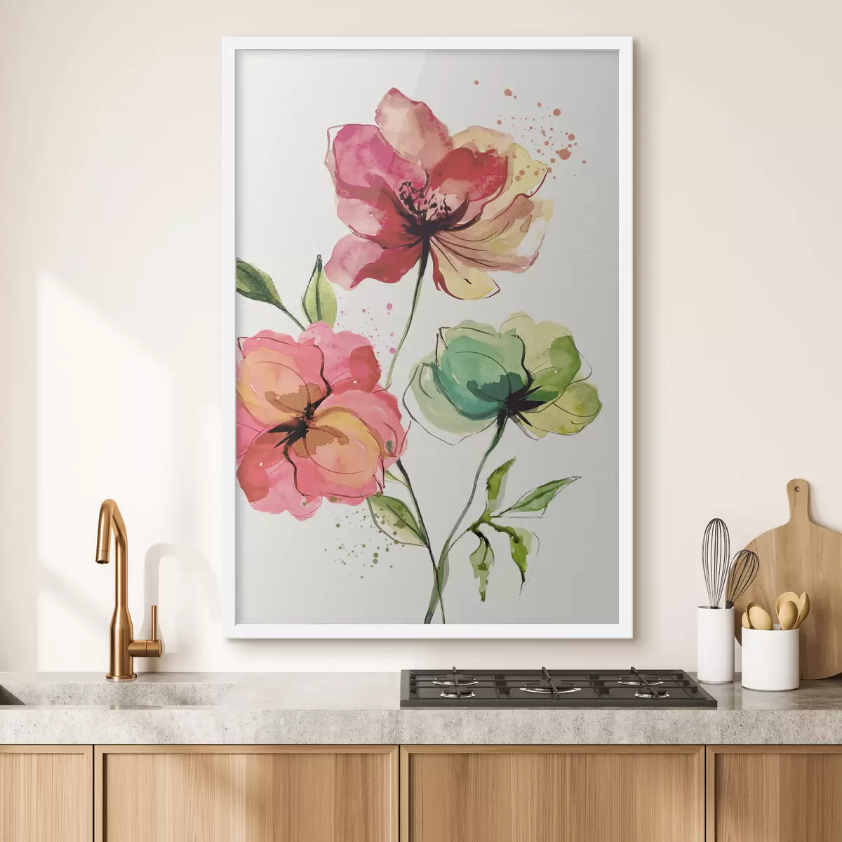 Affiche Fleurs aquarelles avec des touches de peinture Non f39769