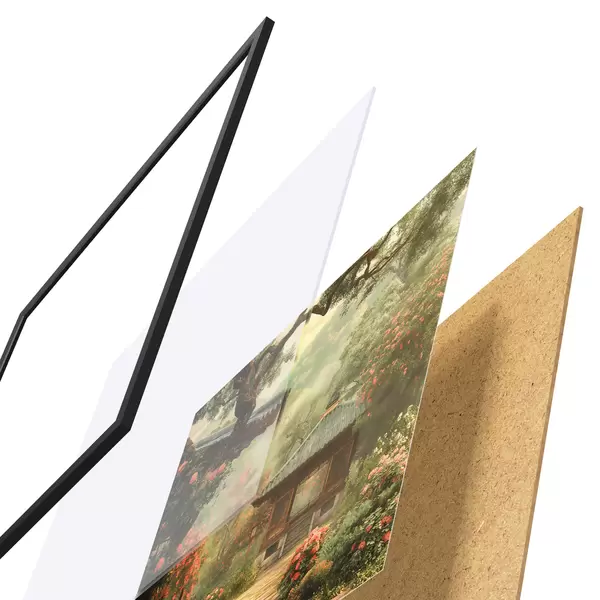 Le poster se compose d'un cadre, d'un plexiglas, d'une image imprimée et d'un support en aggloméré. Le poster peut être immédiatement accroché au mur grâce aux fixations au dos.