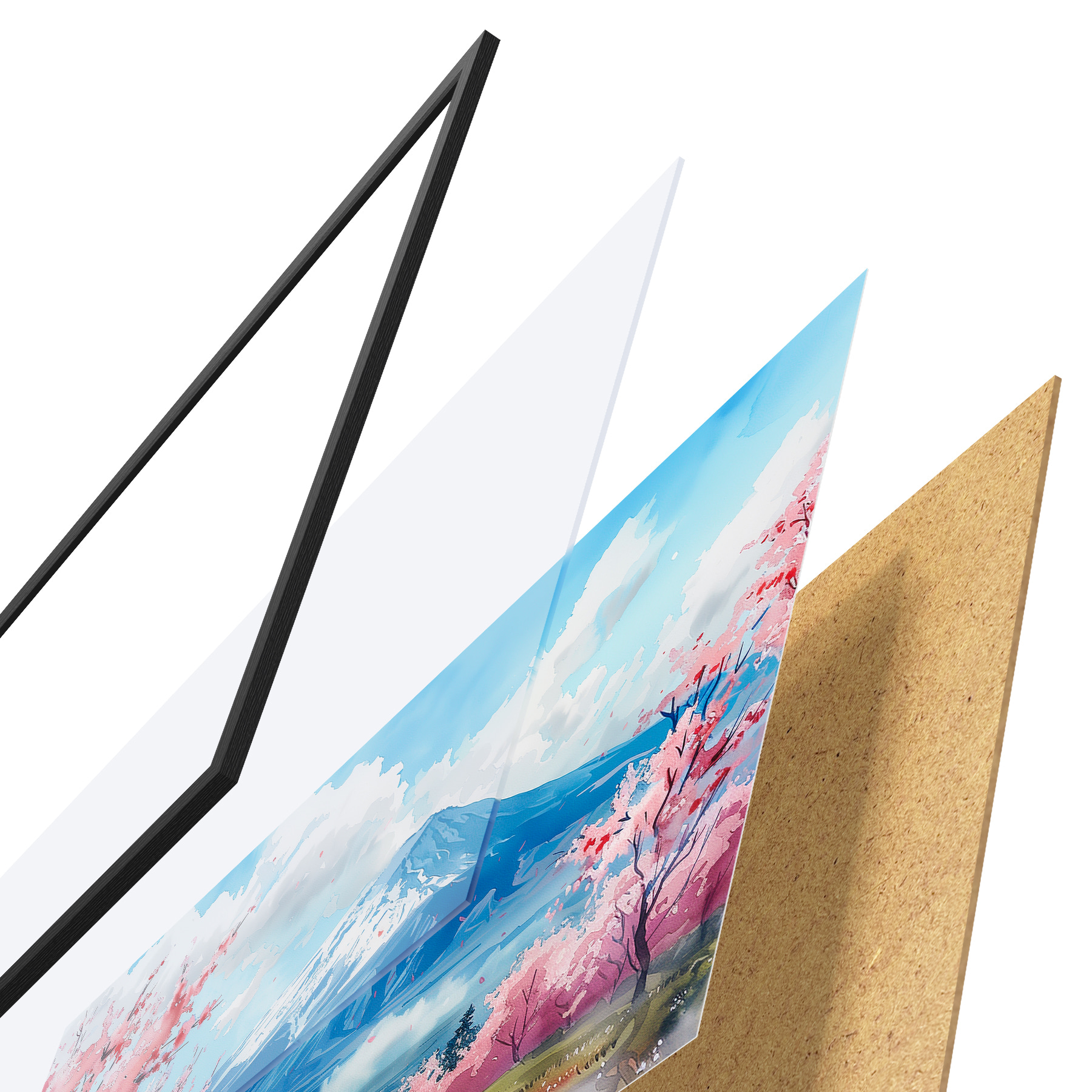 Affiche Paysage de montagne Fuji, nature fleurie au printemps, cerisiers, japonais Non f39777