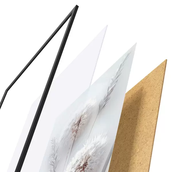 Le poster se compose d'un cadre, d'un plexiglas, d'une image imprimée et d'un support en aggloméré. Le poster peut être immédiatement accroché au mur grâce aux fixations au dos.