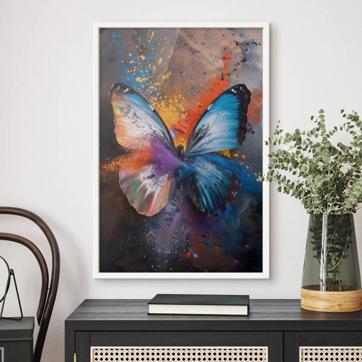 Affiche Grand papillon sur fond abstrait Non f39801