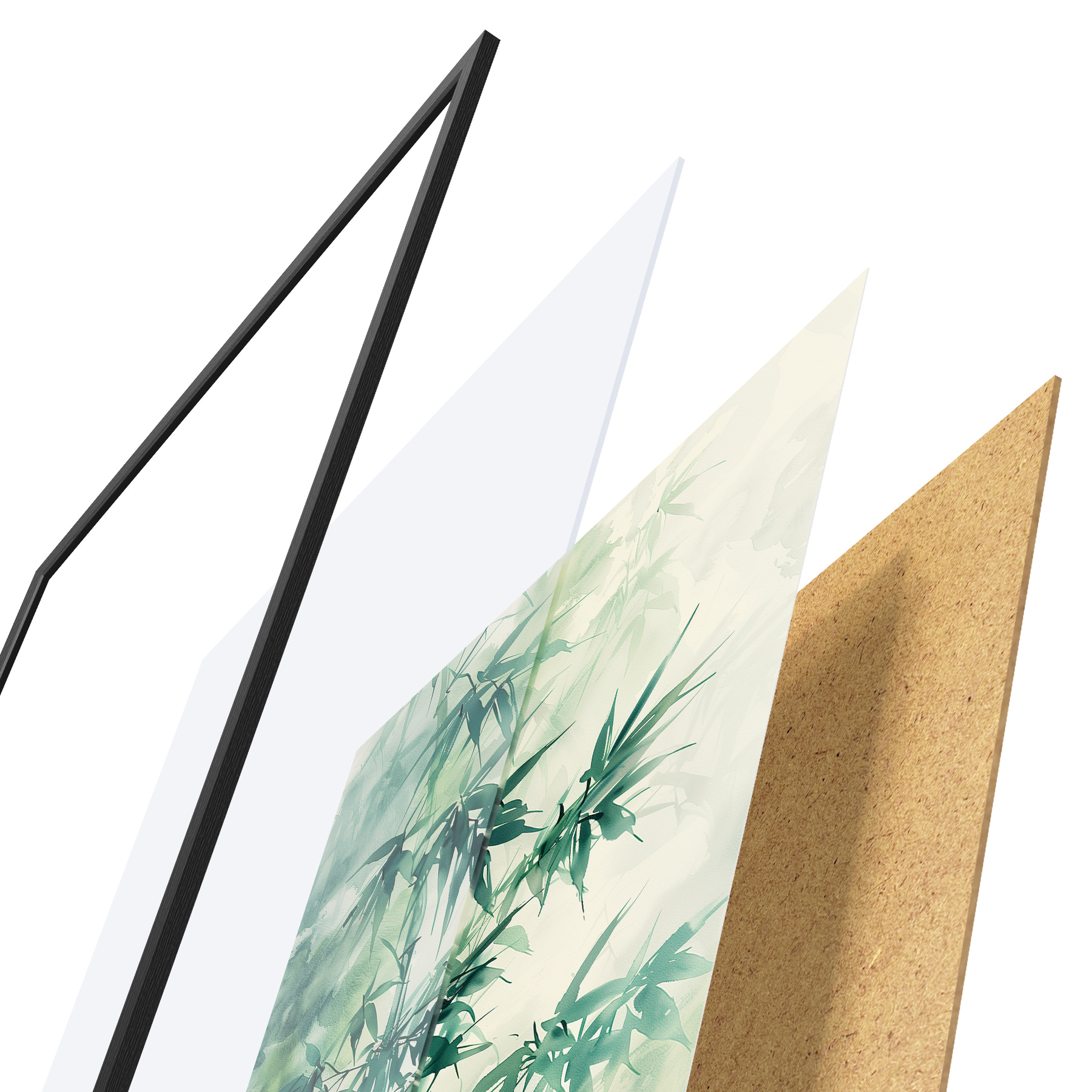 Le poster se compose d'un cadre, d'un plexiglas, d'une image imprimée et d'un support en aggloméré. Le poster peut être immédiatement accroché au mur grâce aux fixations au dos.