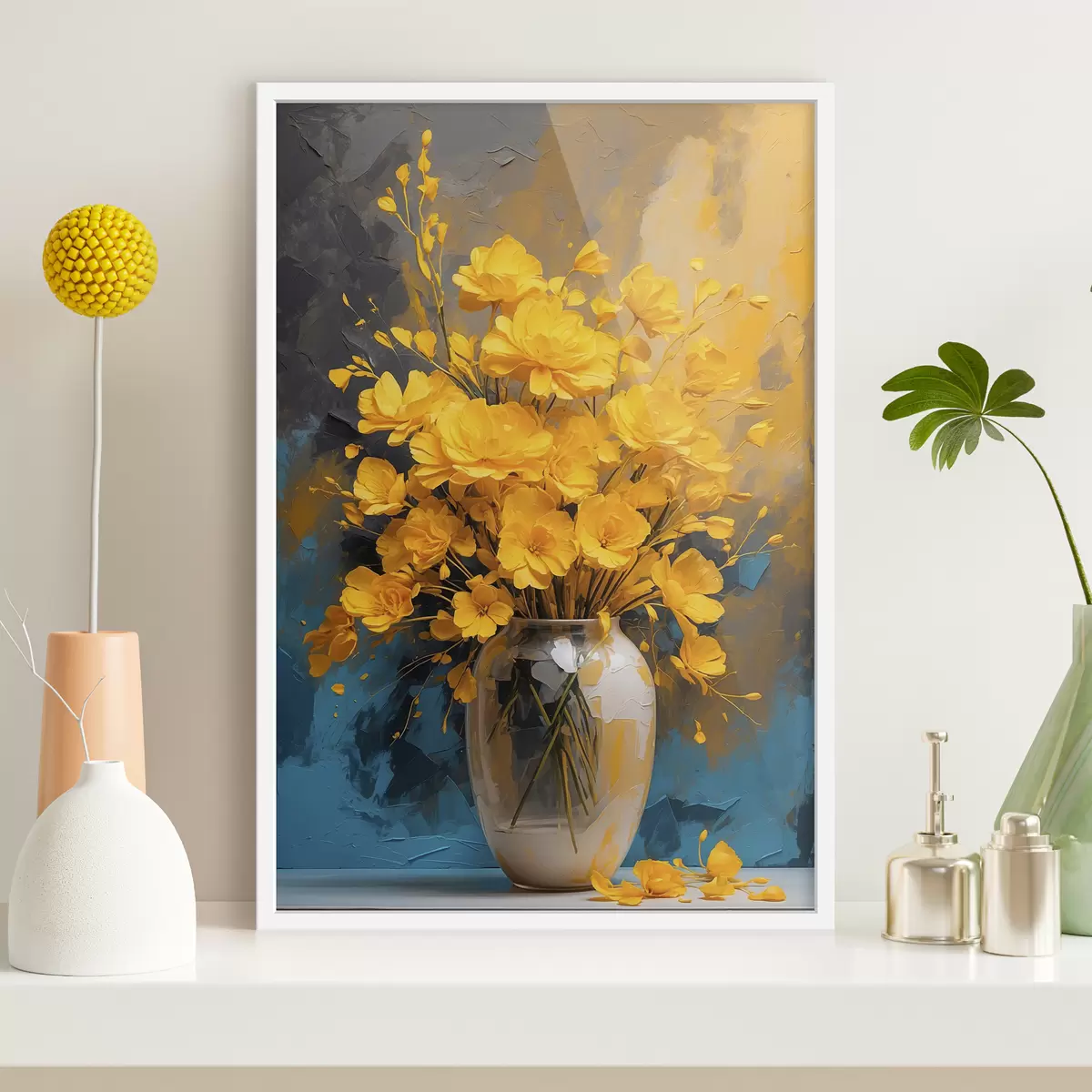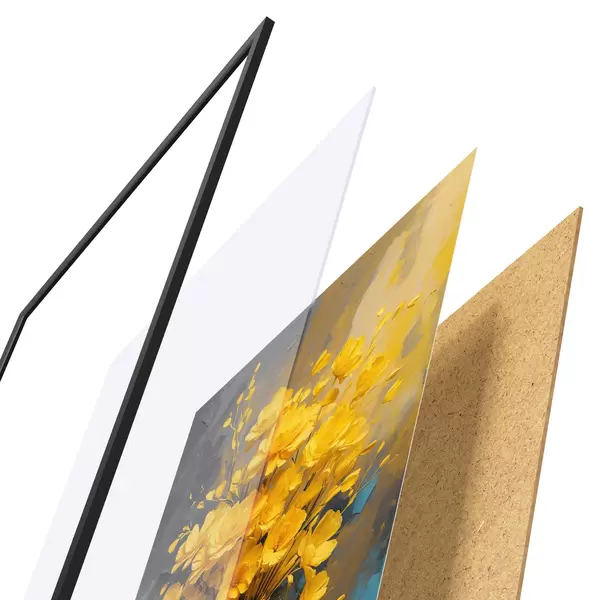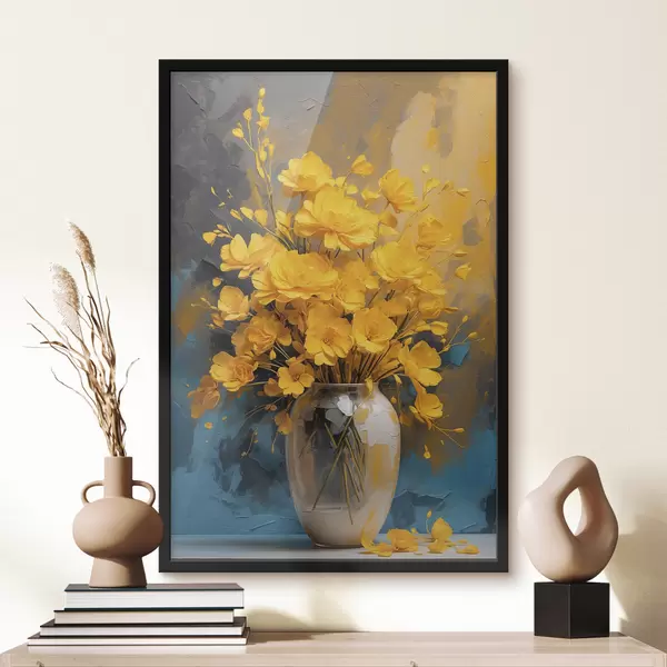 Affiche Fleurs jaunes dans un vase sur fond acrylique multicolore Non f39854