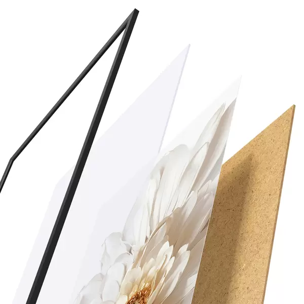 Le poster se compose d'un cadre, d'un plexiglas, d'une image imprimée et d'un support en aggloméré. Le poster peut être immédiatement accroché au mur grâce aux fixations au dos.