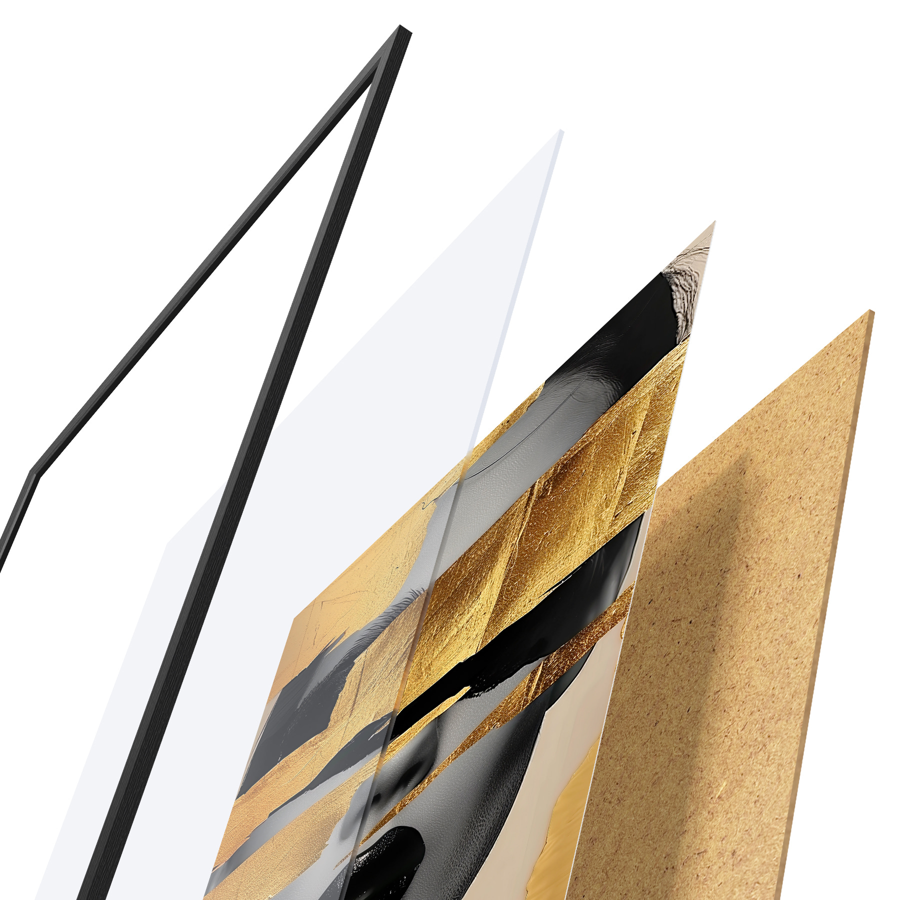 Le poster se compose d'un cadre, d'un plexiglas, d'une image imprimée et d'un support en aggloméré. Le poster peut être immédiatement accroché au mur grâce aux fixations au dos.