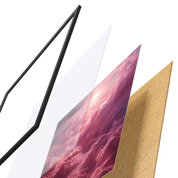 Le poster se compose d'un cadre, d'un plexiglas, d'une image imprimée et d'un support en aggloméré. Le poster peut être immédiatement accroché au mur grâce aux fixations au dos.