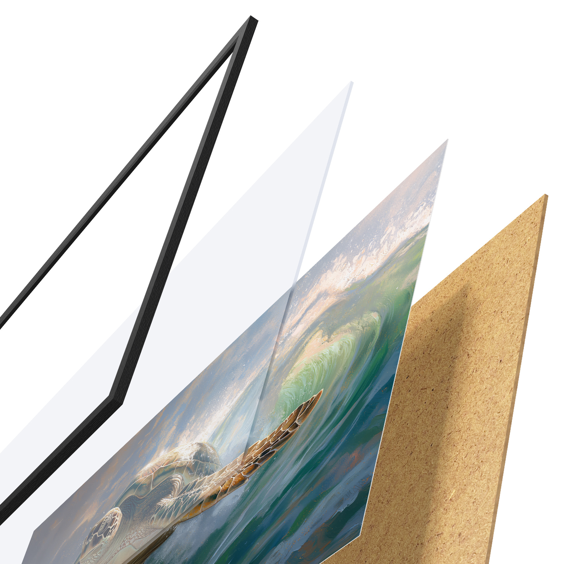 Le poster se compose d'un cadre, d'un plexiglas, d'une image imprimée et d'un support en aggloméré. Le poster peut être immédiatement accroché au mur grâce aux fixations au dos.