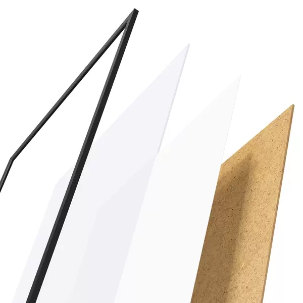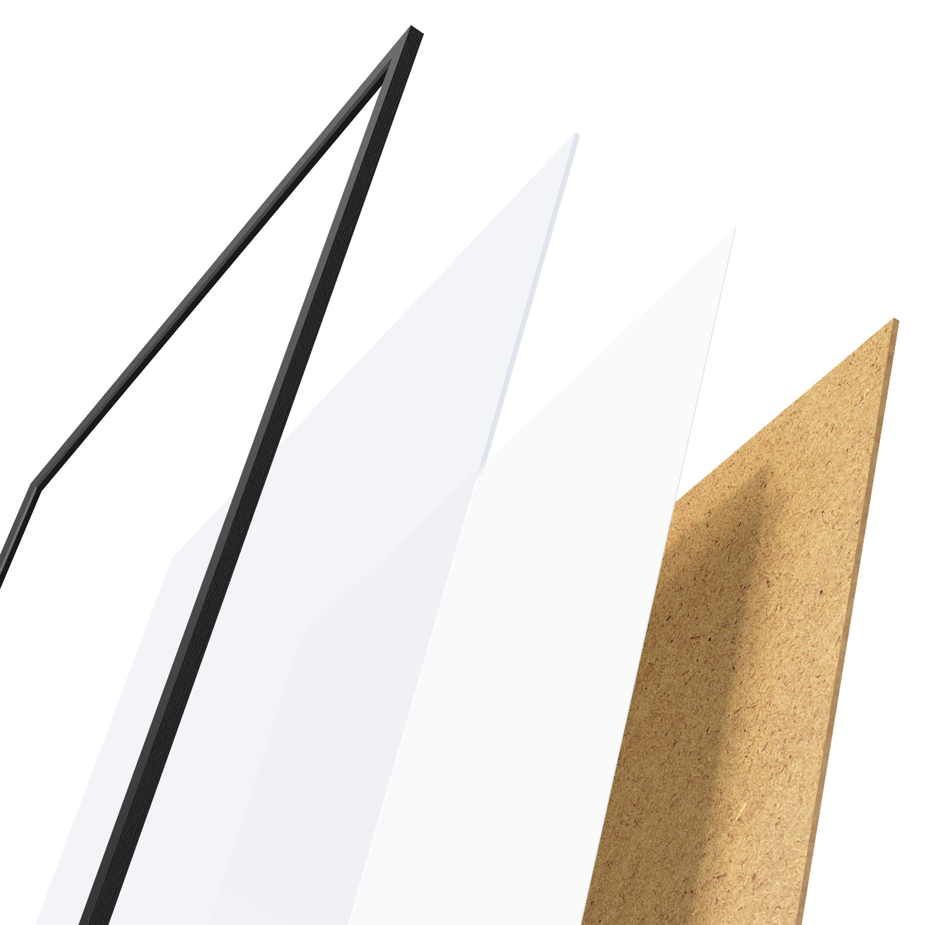 Le poster se compose d'un cadre, d'un plexiglas, d'une image imprimée et d'un support en aggloméré. Le poster peut être immédiatement accroché au mur grâce aux fixations au dos.