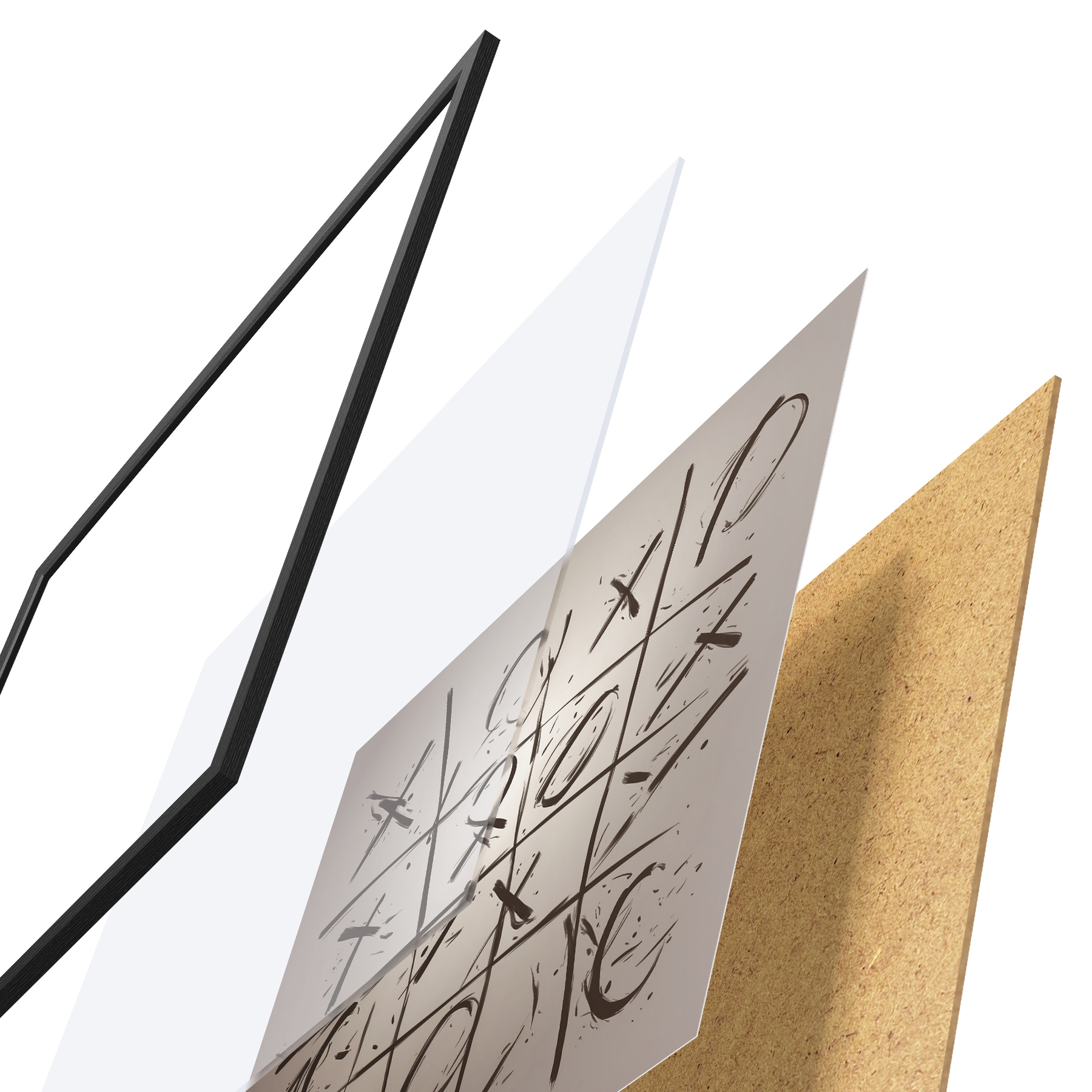 Le poster se compose d'un cadre, d'un plexiglas, d'une image imprimée et d'un support en aggloméré. Le poster peut être immédiatement accroché au mur grâce aux fixations au dos.