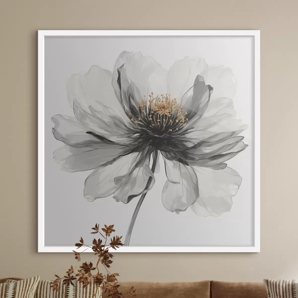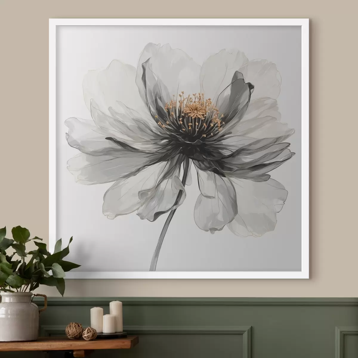 Affiche Fleur noire transparente sur fond blanc Non f40066