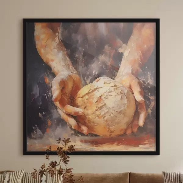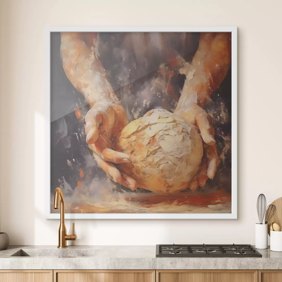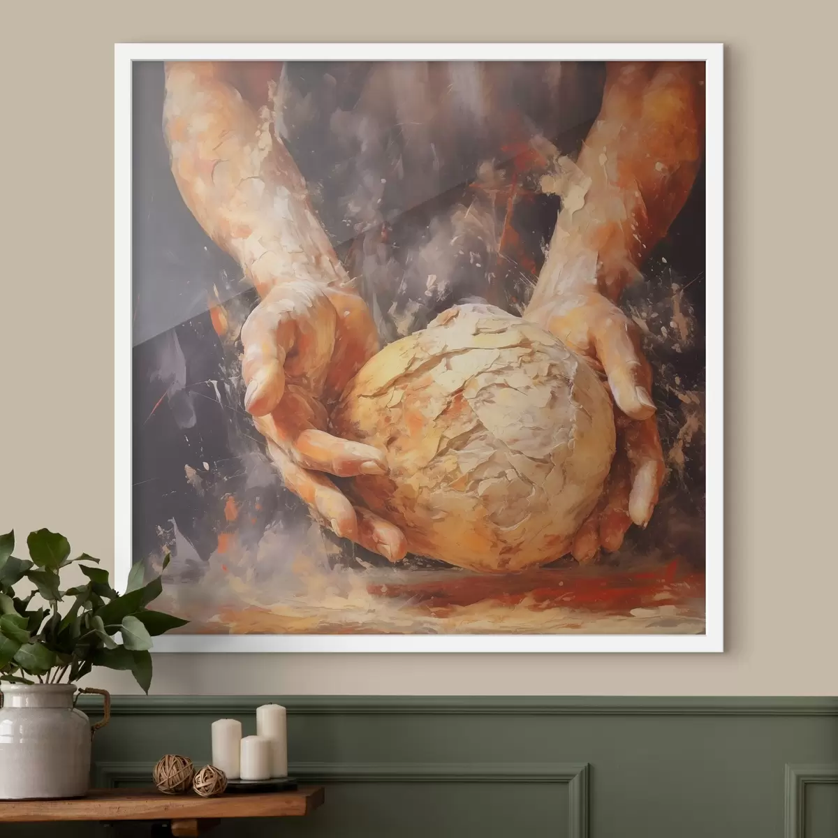 Affiche Mains du boulanger tenant la pâte, imitation d'une peinture à l'huile f40095