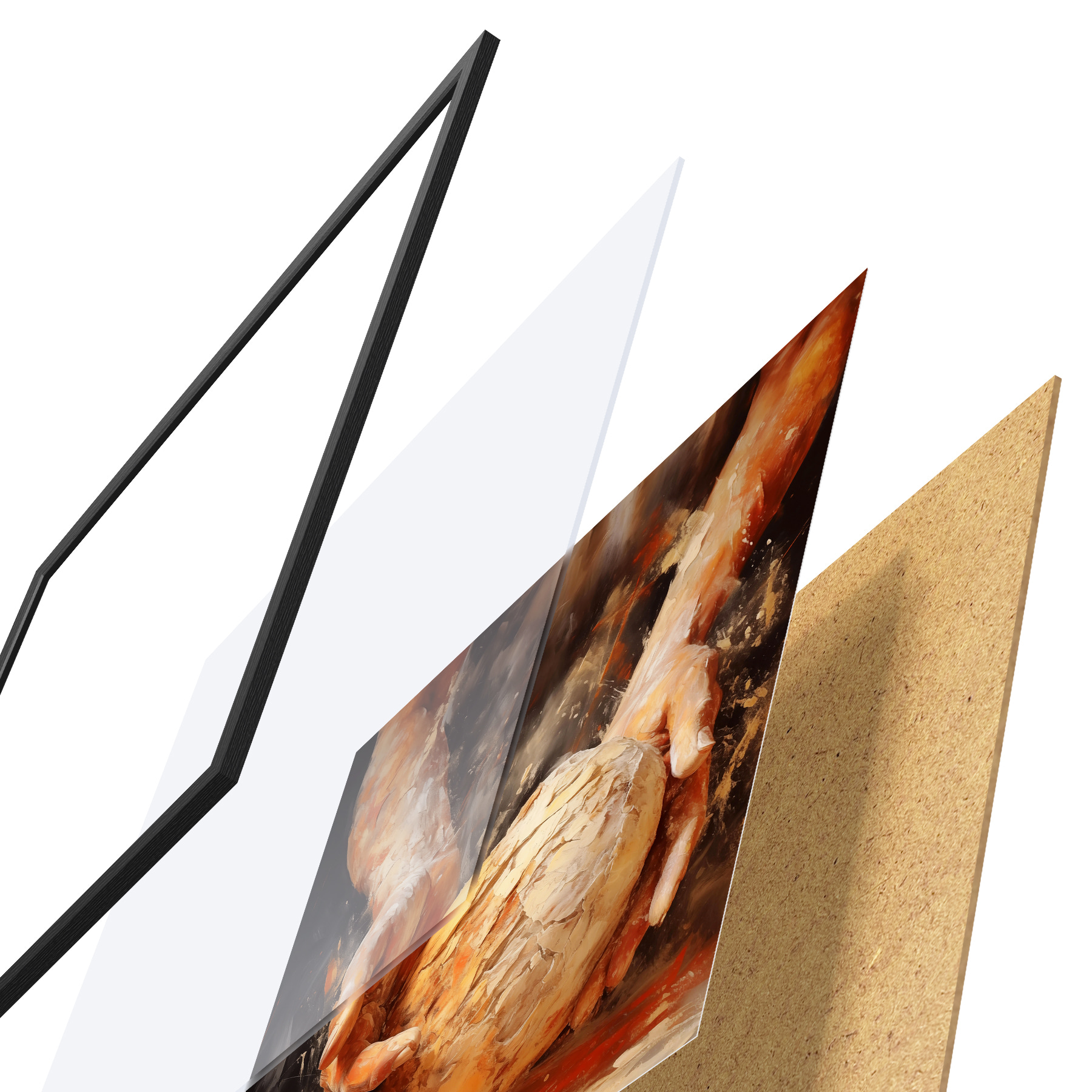 Le poster se compose d'un cadre, d'un plexiglas, d'une image imprimée et d'un support en aggloméré. Le poster peut être immédiatement accroché au mur grâce aux fixations au dos.