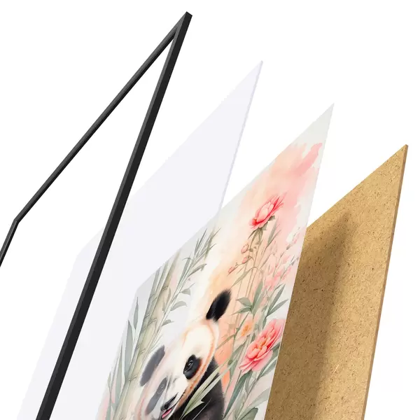 Le poster se compose d'un cadre, d'un plexiglas, d'une image imprimée et d'un support en aggloméré. Le poster peut être immédiatement accroché au mur grâce aux fixations au dos.