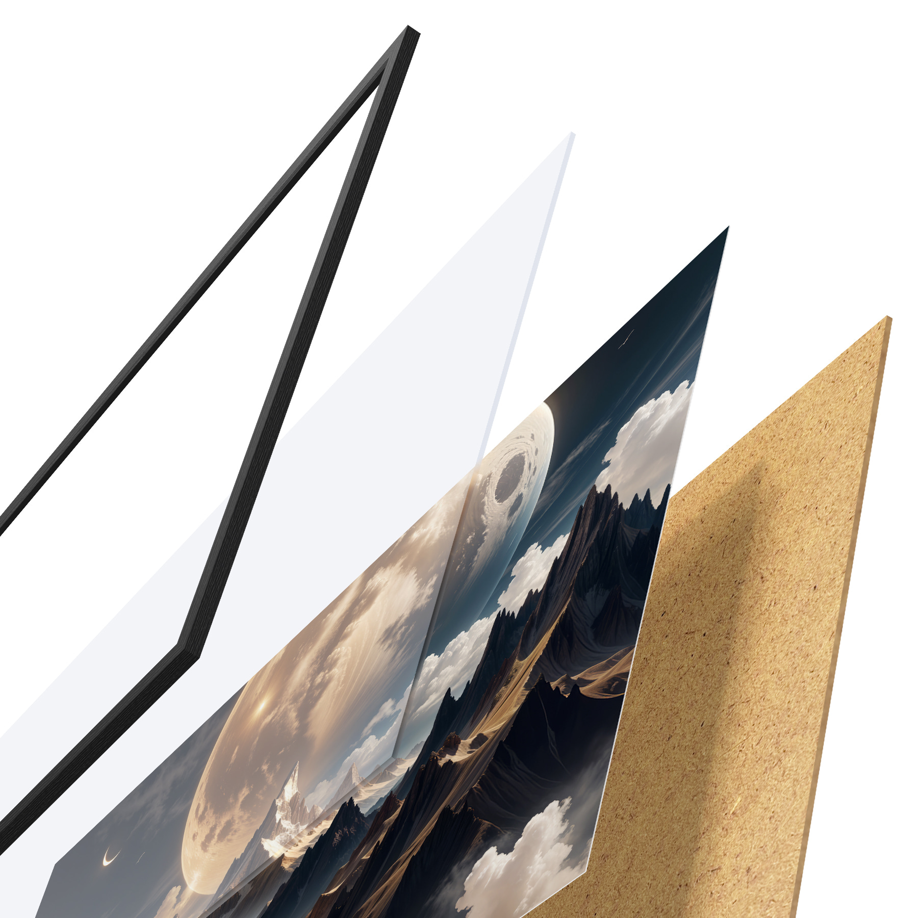 Le poster se compose d'un cadre, d'un plexiglas, d'une image imprimée et d'un support en aggloméré. Le poster peut être immédiatement accroché au mur grâce aux fixations au dos.
