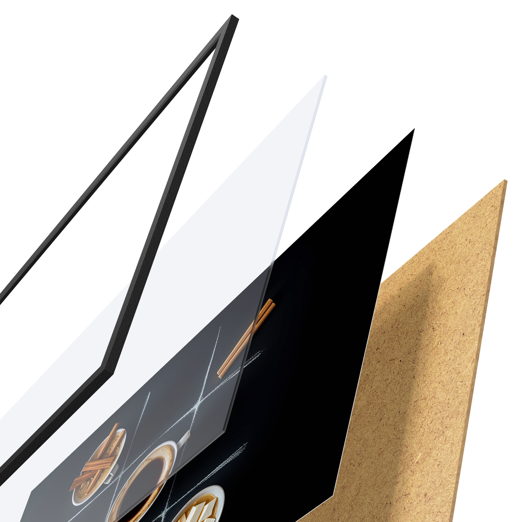 Le poster se compose d'un cadre, d'un plexiglas, d'une image imprimée et d'un support en aggloméré. Le poster peut être immédiatement accroché au mur grâce aux fixations au dos.