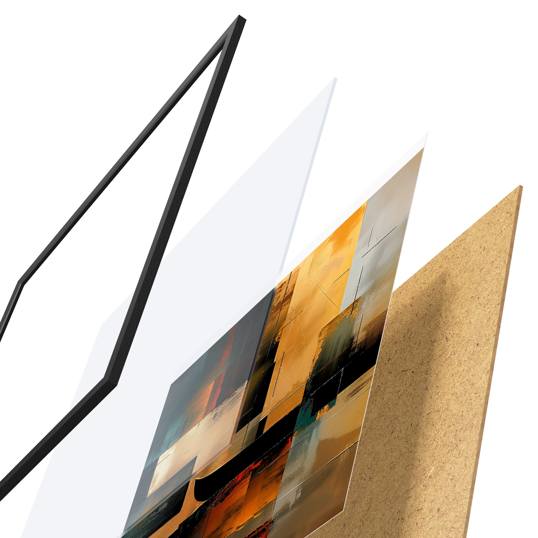 Le poster se compose d'un cadre, d'un plexiglas, d'une image imprimée et d'un support en aggloméré. Le poster peut être immédiatement accroché au mur grâce aux fixations au dos.