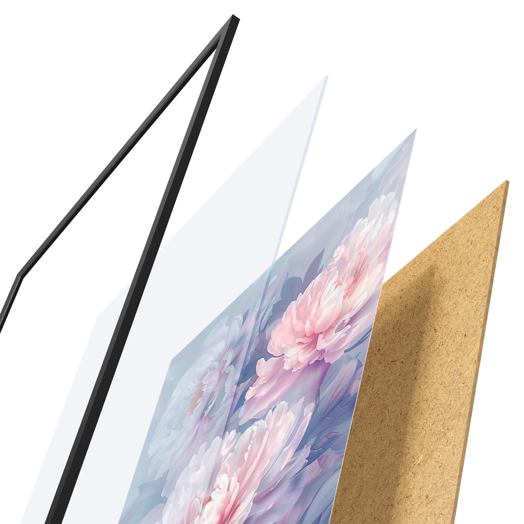 Le poster se compose d'un cadre, d'un plexiglas, d'une image imprimée et d'un support en aggloméré. Le poster peut être immédiatement accroché au mur grâce aux fixations au dos.