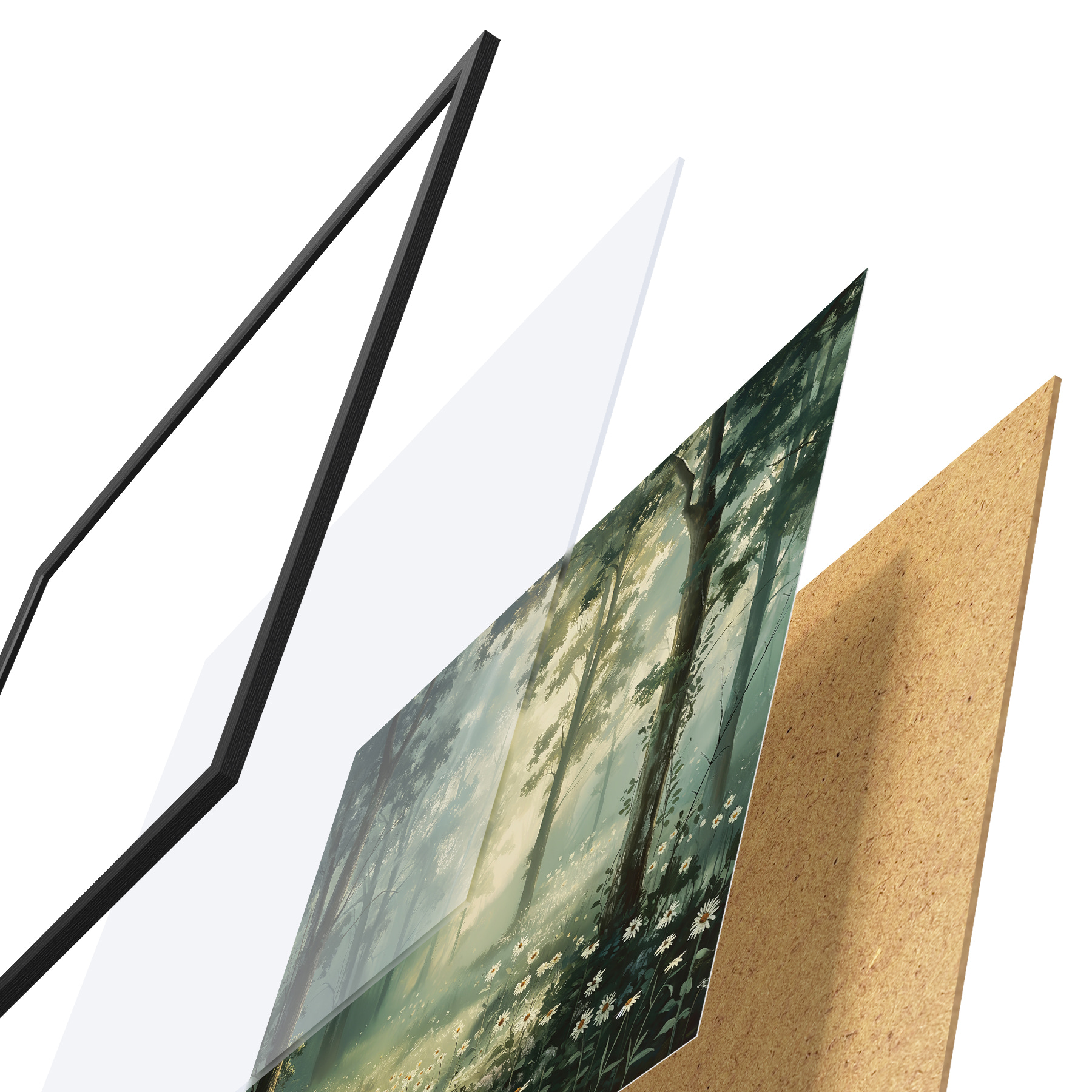 Le poster se compose d'un cadre, d'un plexiglas, d'une image imprimée et d'un support en aggloméré. Le poster peut être immédiatement accroché au mur grâce aux fixations au dos.