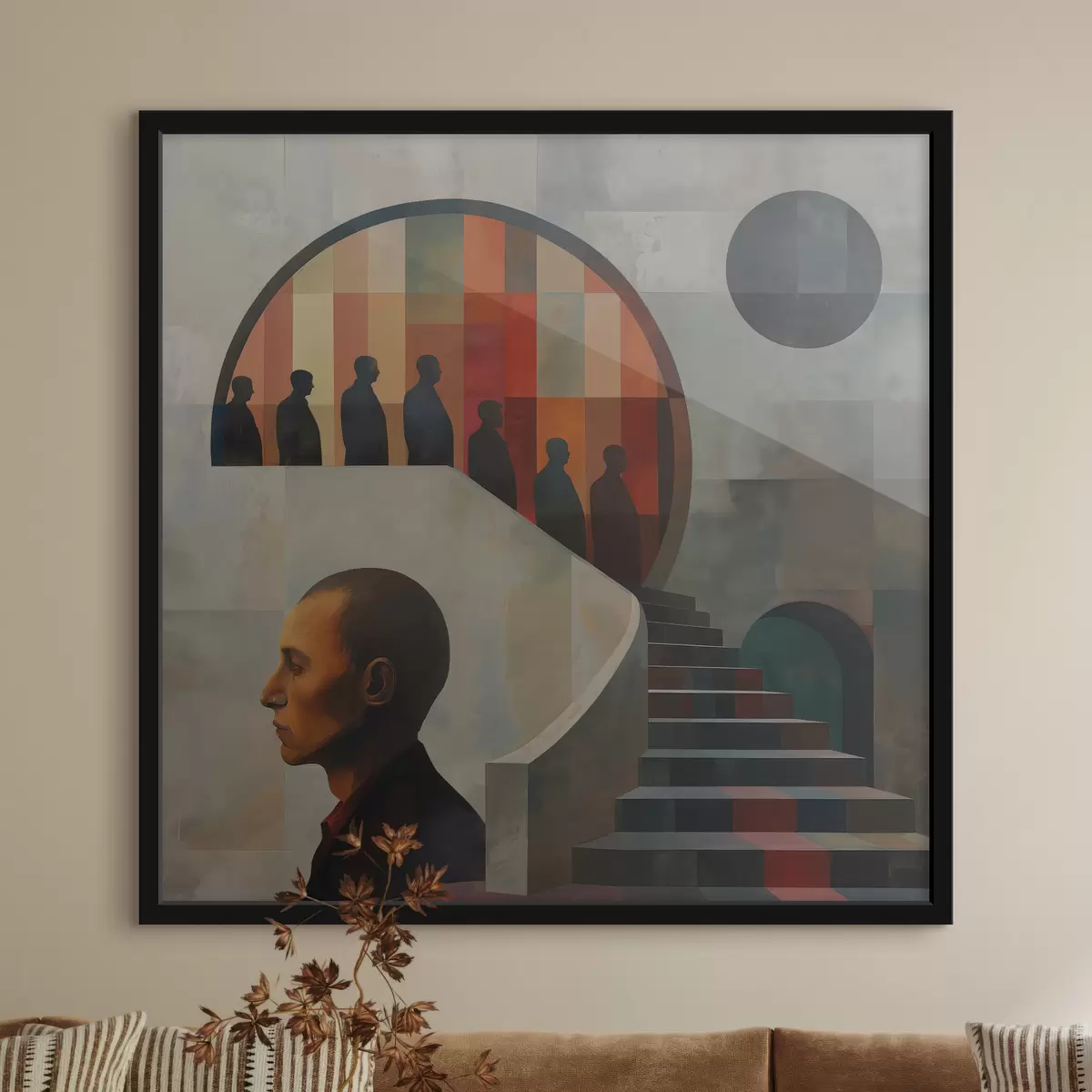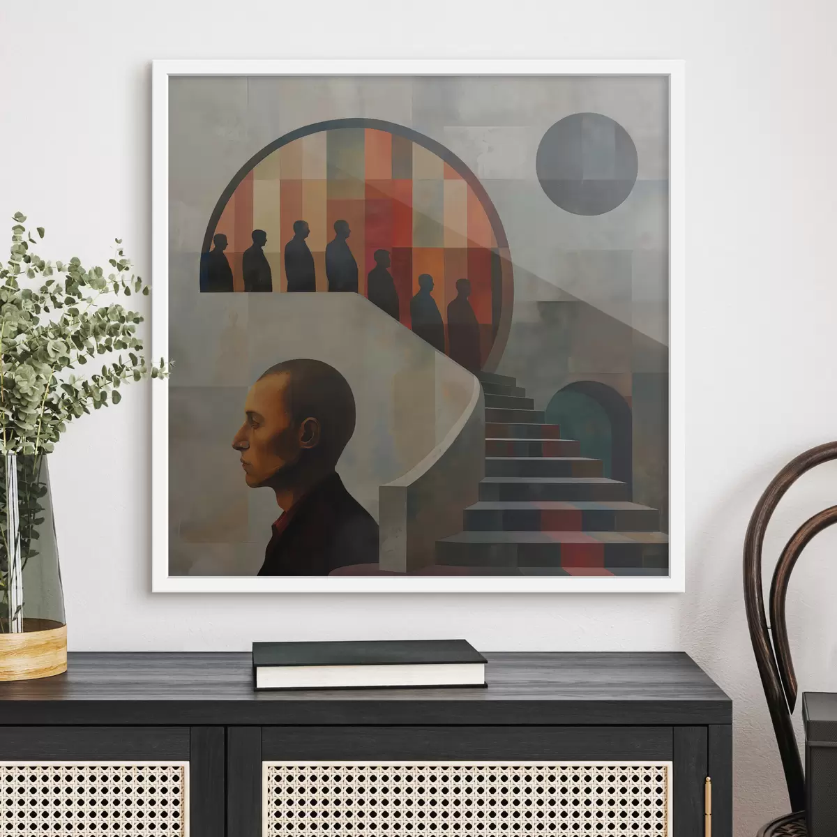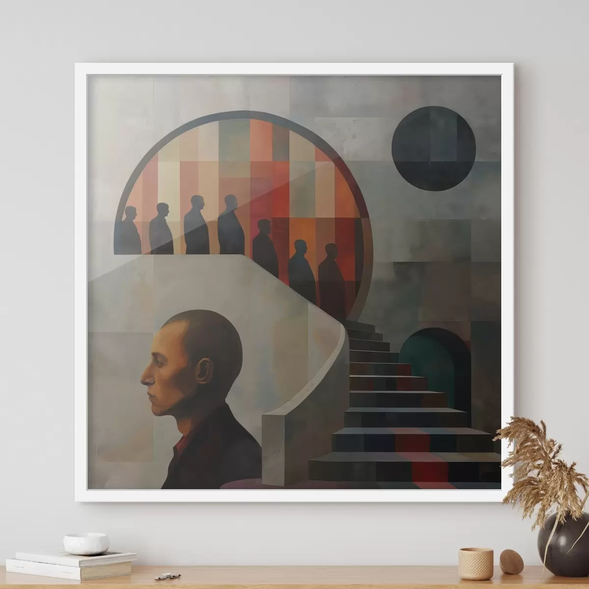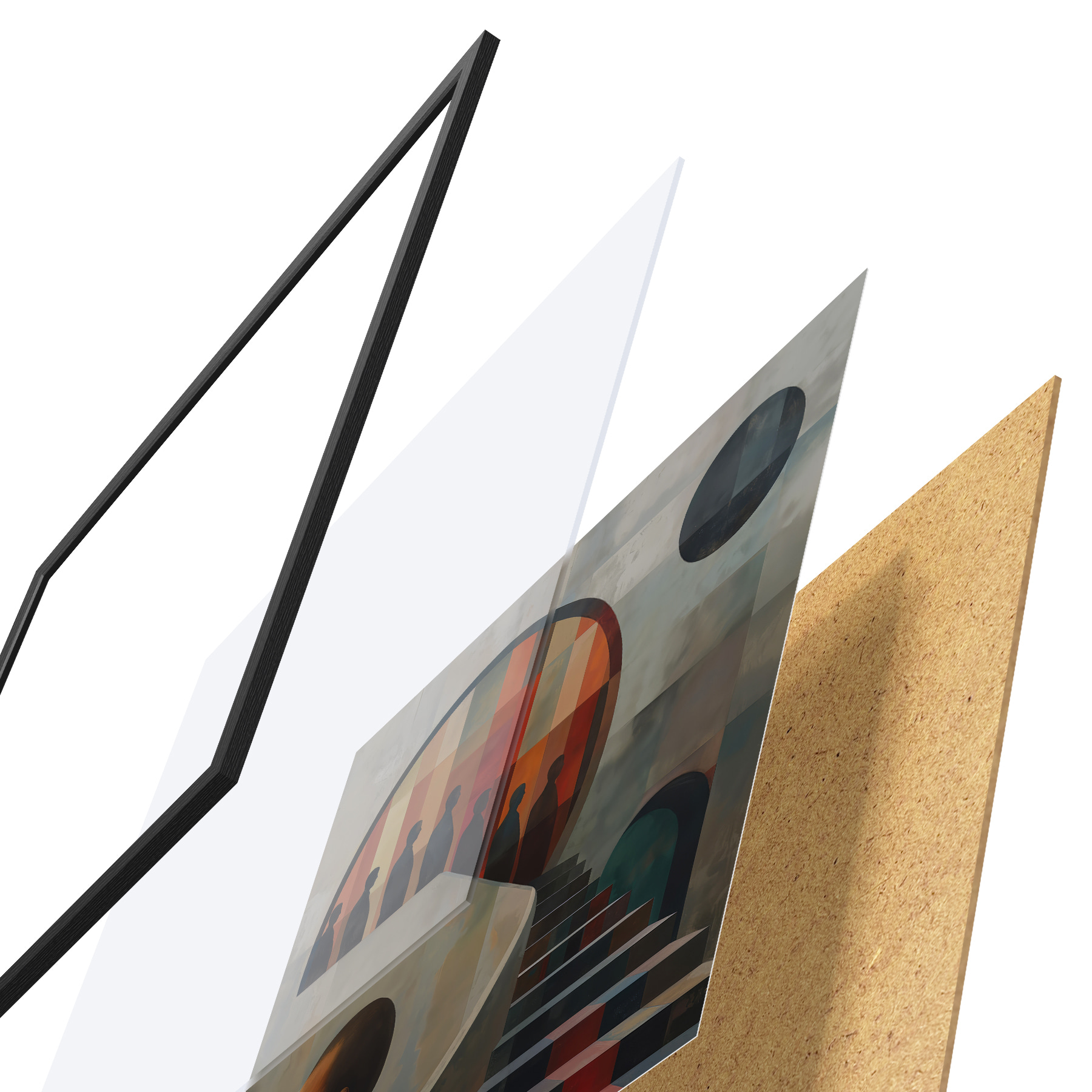 Le poster se compose d'un cadre, d'un plexiglas, d'une image imprimée et d'un support en aggloméré. Le poster peut être immédiatement accroché au mur grâce aux fixations au dos.