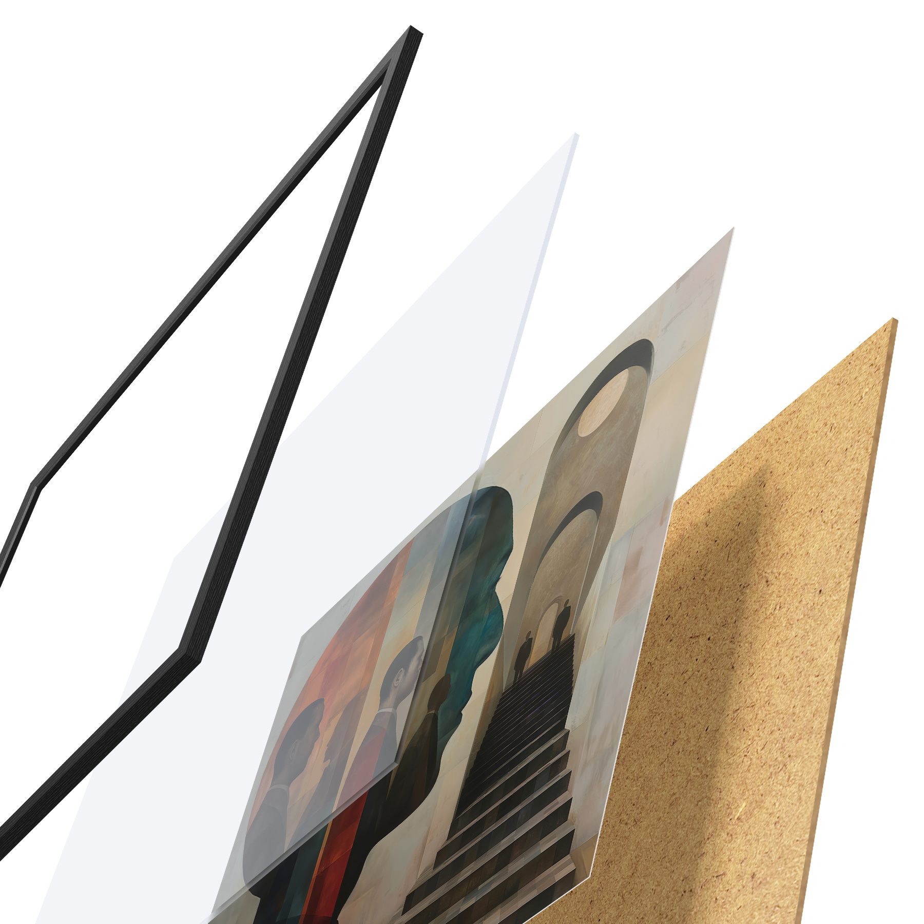 Le poster se compose d'un cadre, d'un plexiglas, d'une image imprimée et d'un support en aggloméré. Le poster peut être immédiatement accroché au mur grâce aux fixations au dos.