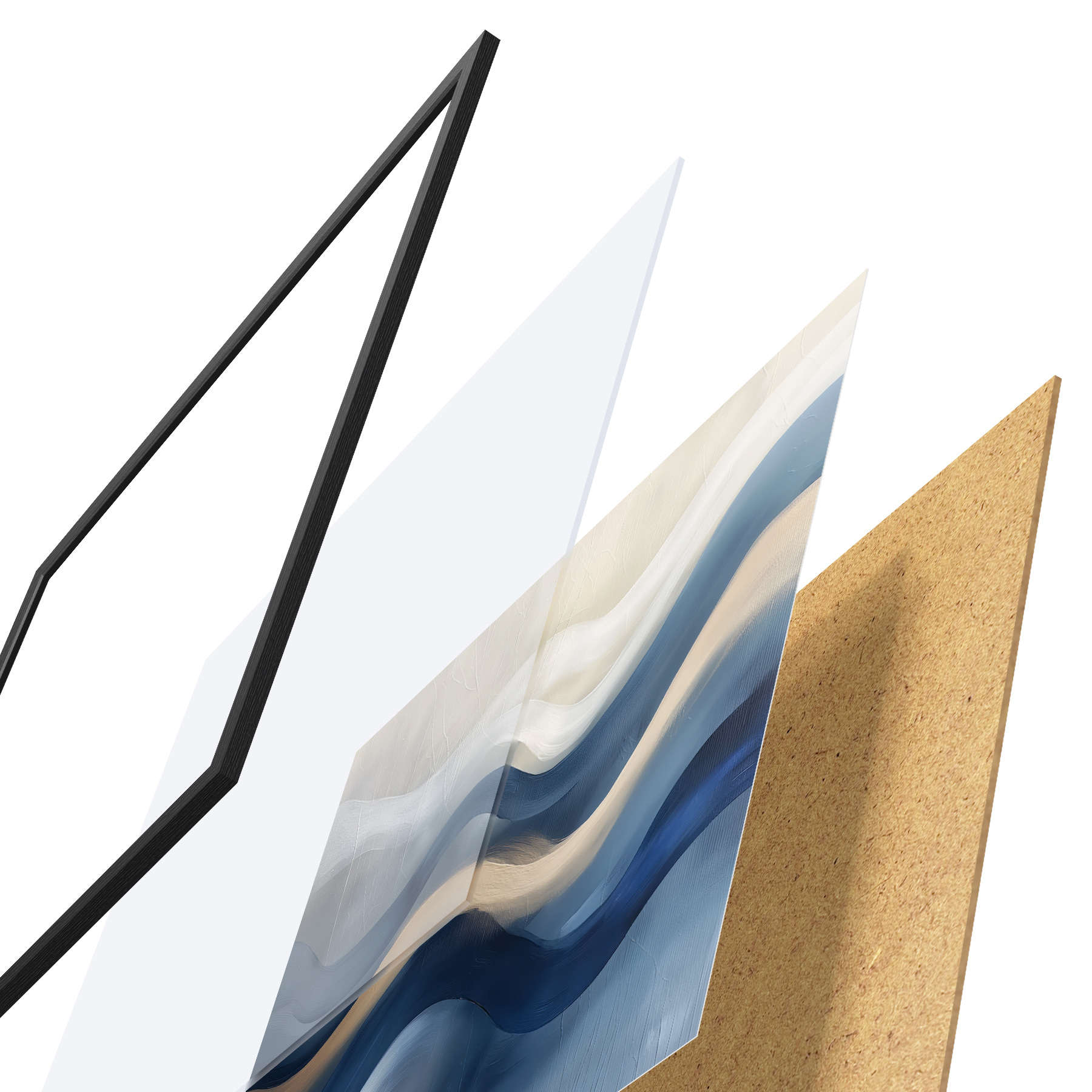 Le poster se compose d'un cadre, d'un plexiglas, d'une image imprimée et d'un support en aggloméré. Le poster peut être immédiatement accroché au mur grâce aux fixations au dos.