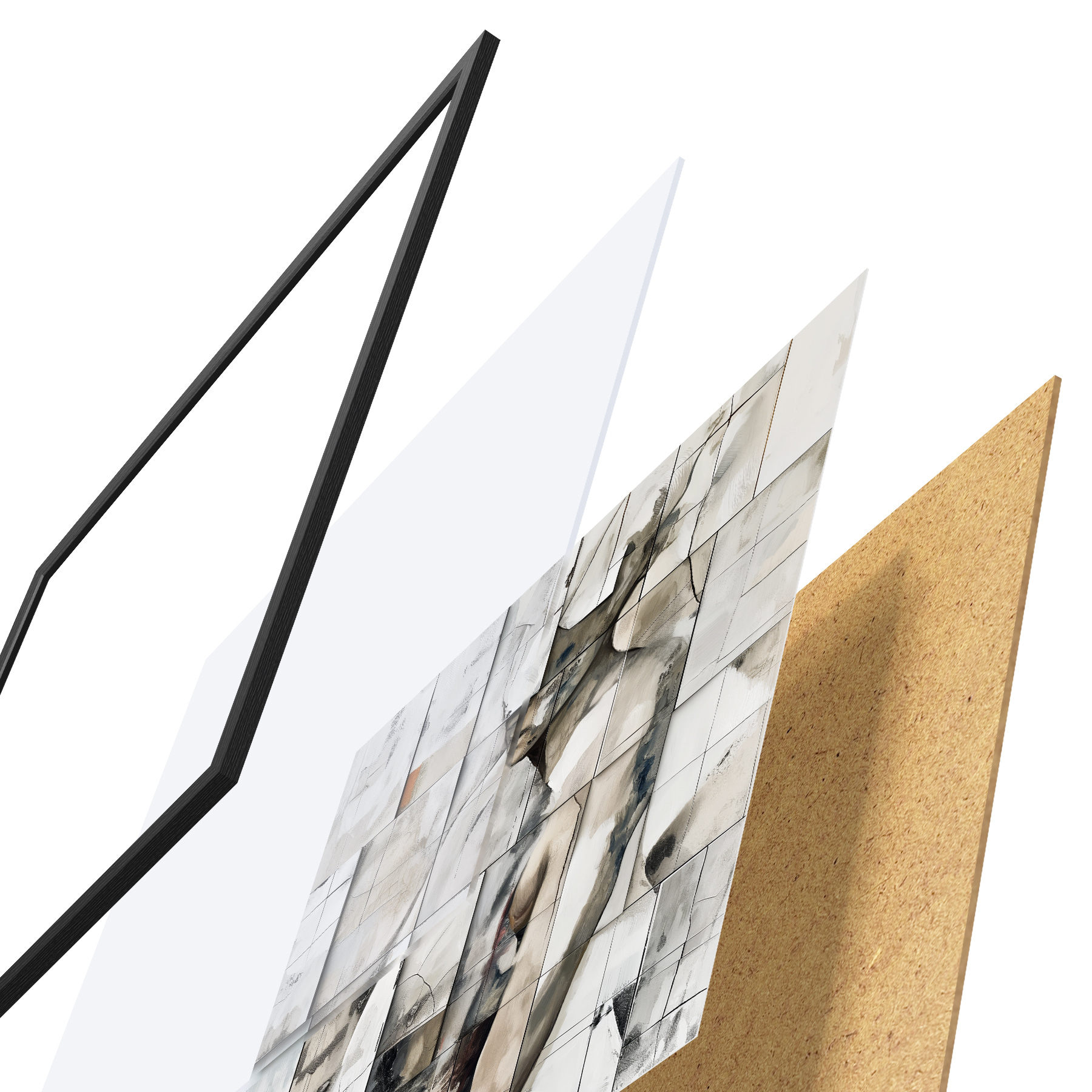 Le poster se compose d'un cadre, d'un plexiglas, d'une image imprimée et d'un support en aggloméré. Le poster peut être immédiatement accroché au mur grâce aux fixations au dos.