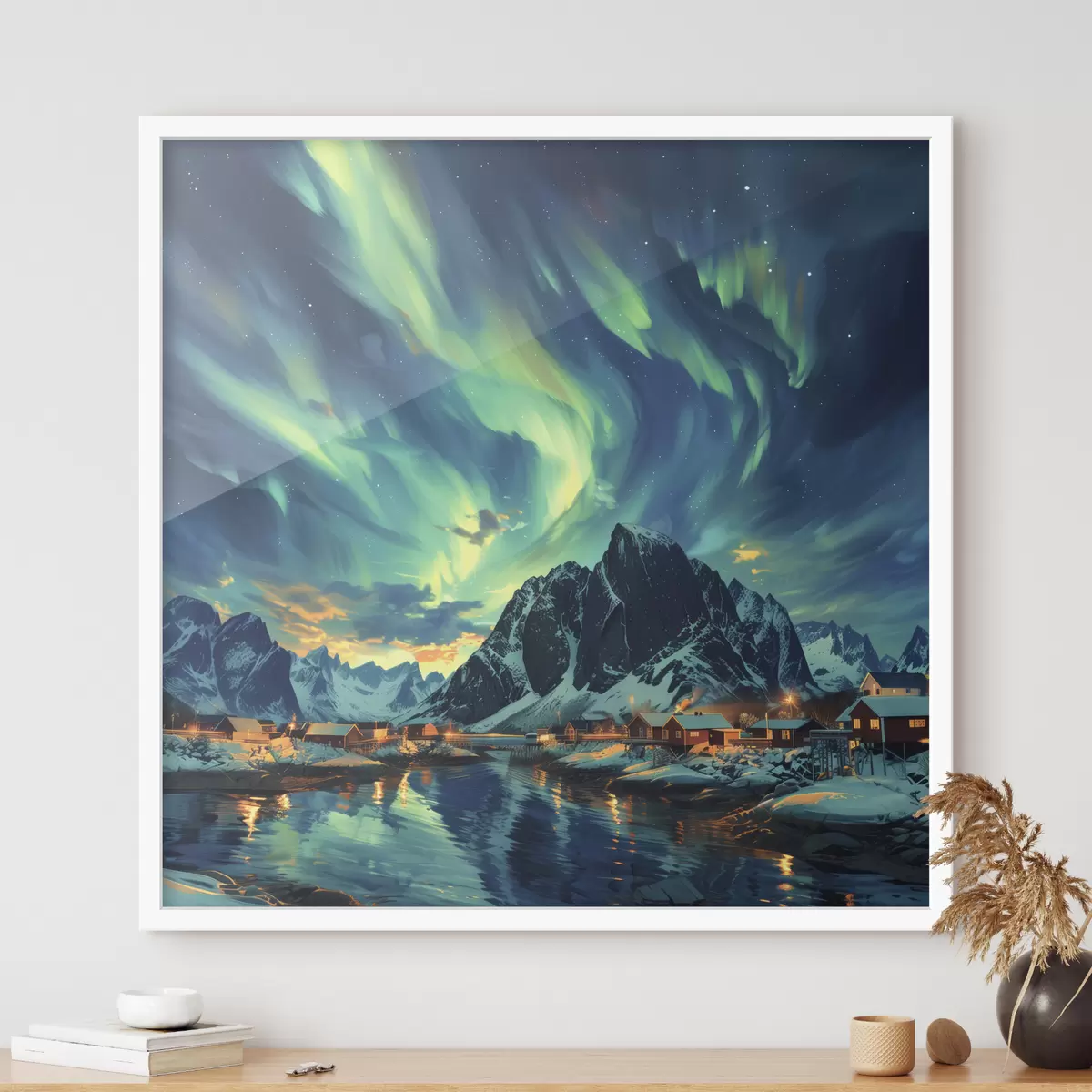 Affiche Îles Lofoten, lumières nordiques, village d'hiver Non f40299