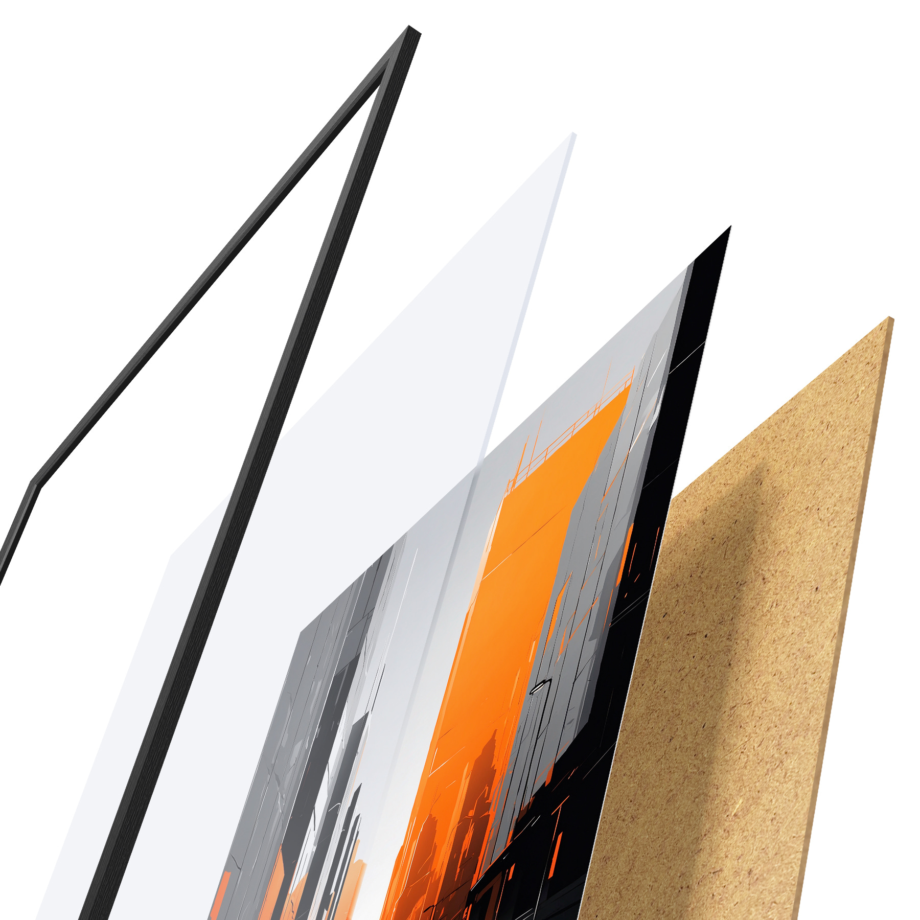 Le poster se compose d'un cadre, d'un plexiglas, d'une image imprimée et d'un support en aggloméré. Le poster peut être immédiatement accroché au mur grâce aux fixations au dos.